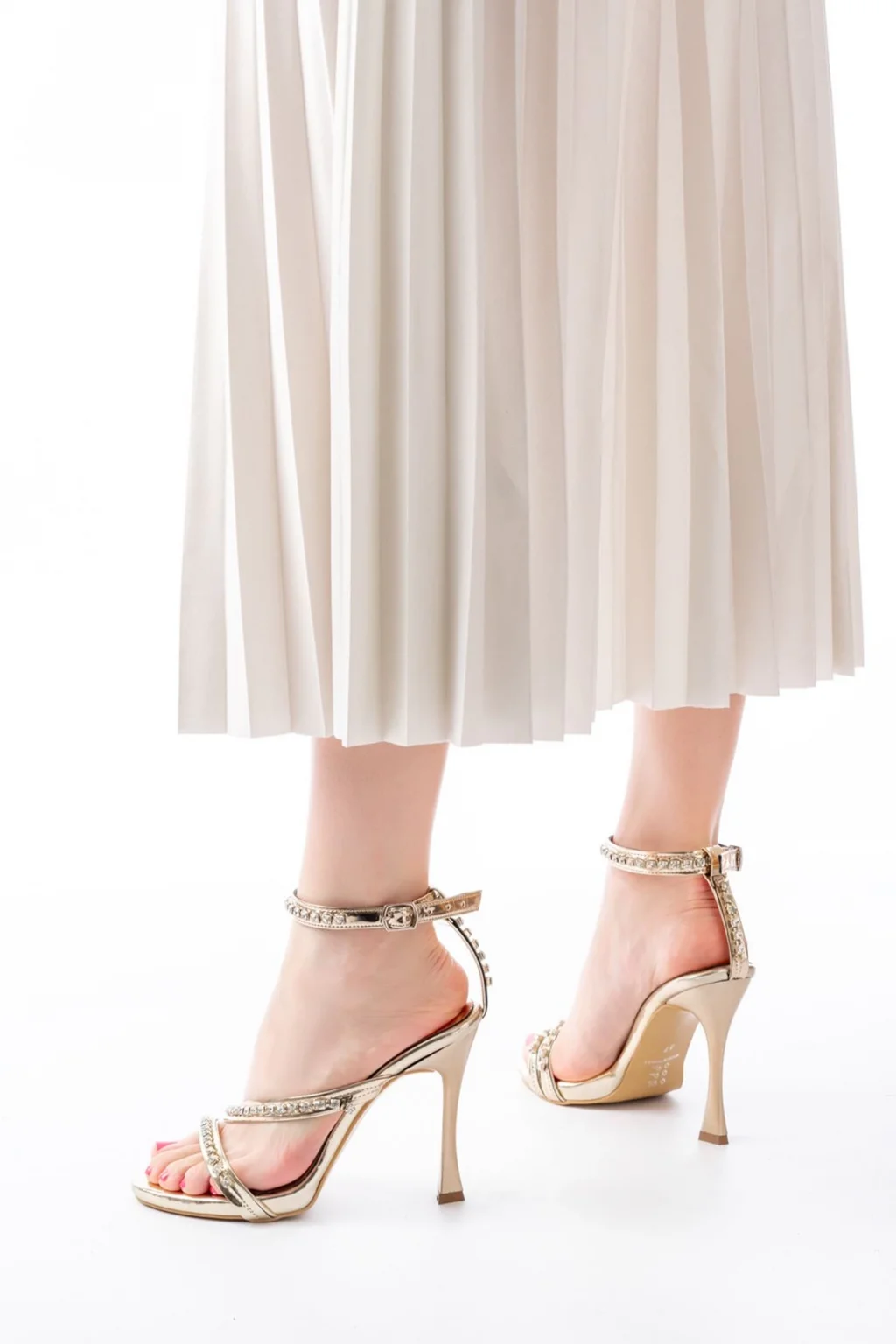 Mewi Bej Saten Topuklu Ayakkabı