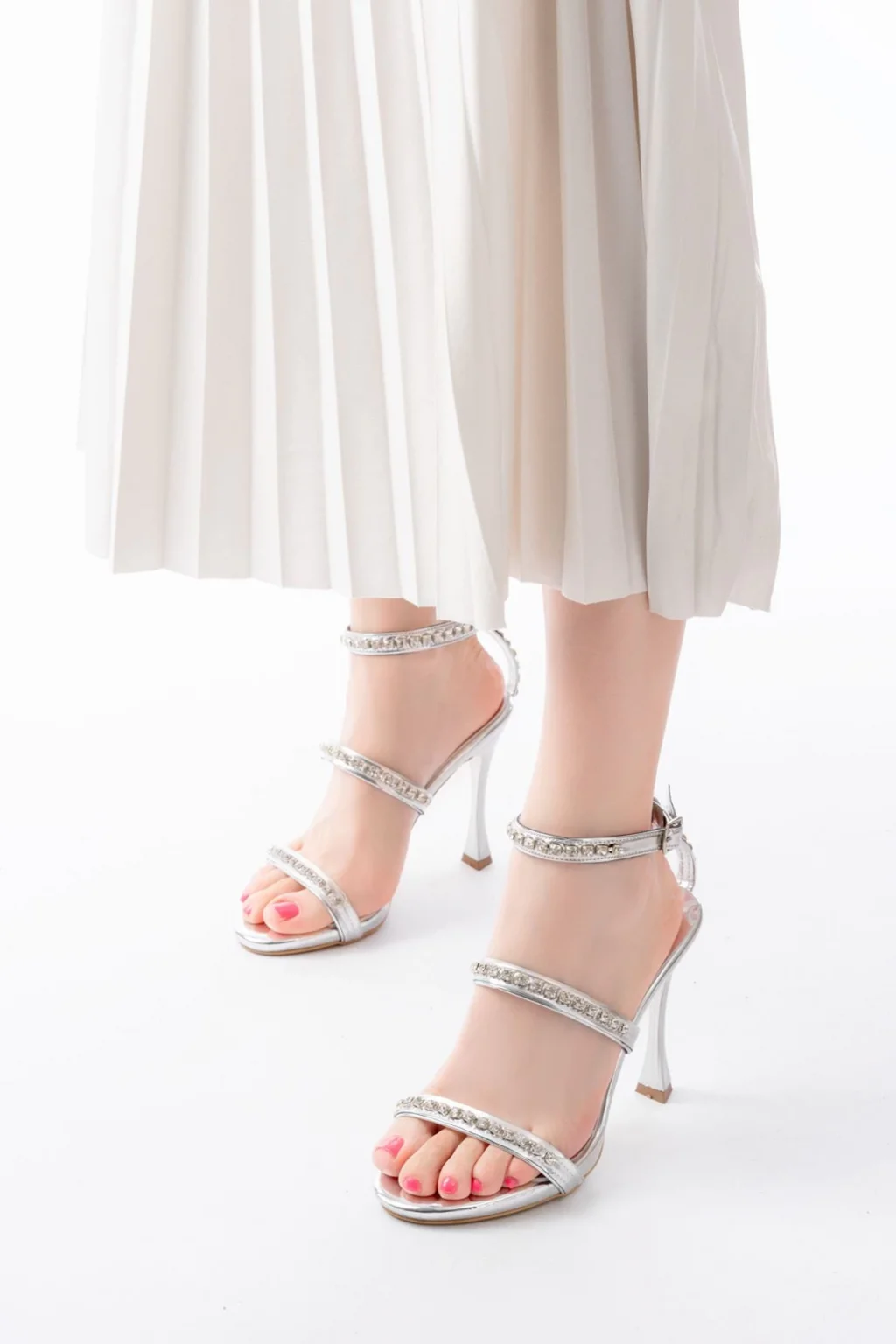 Mewi Bej Saten Topuklu Ayakkabı