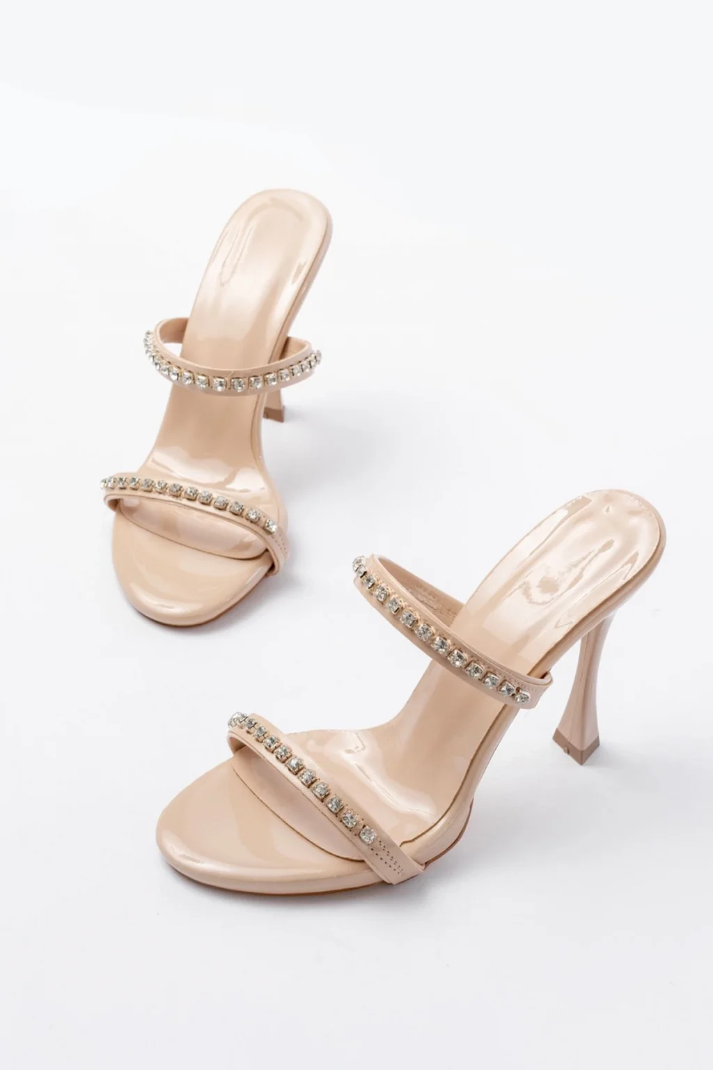 Toran Beyaz Rugan Siyah Süet Detaylı Topuklu Ayakkabı