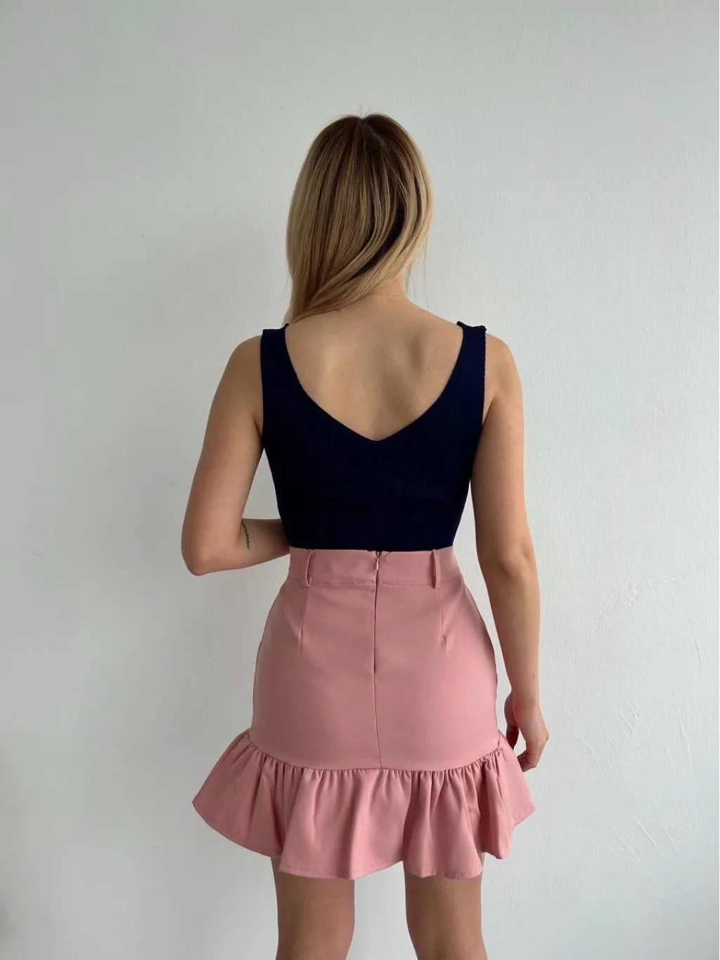 Altı fırfırlı etek pudra s24817, kadın giyim koleksiyonumuzun şık ve zarif parçalarından biridir.