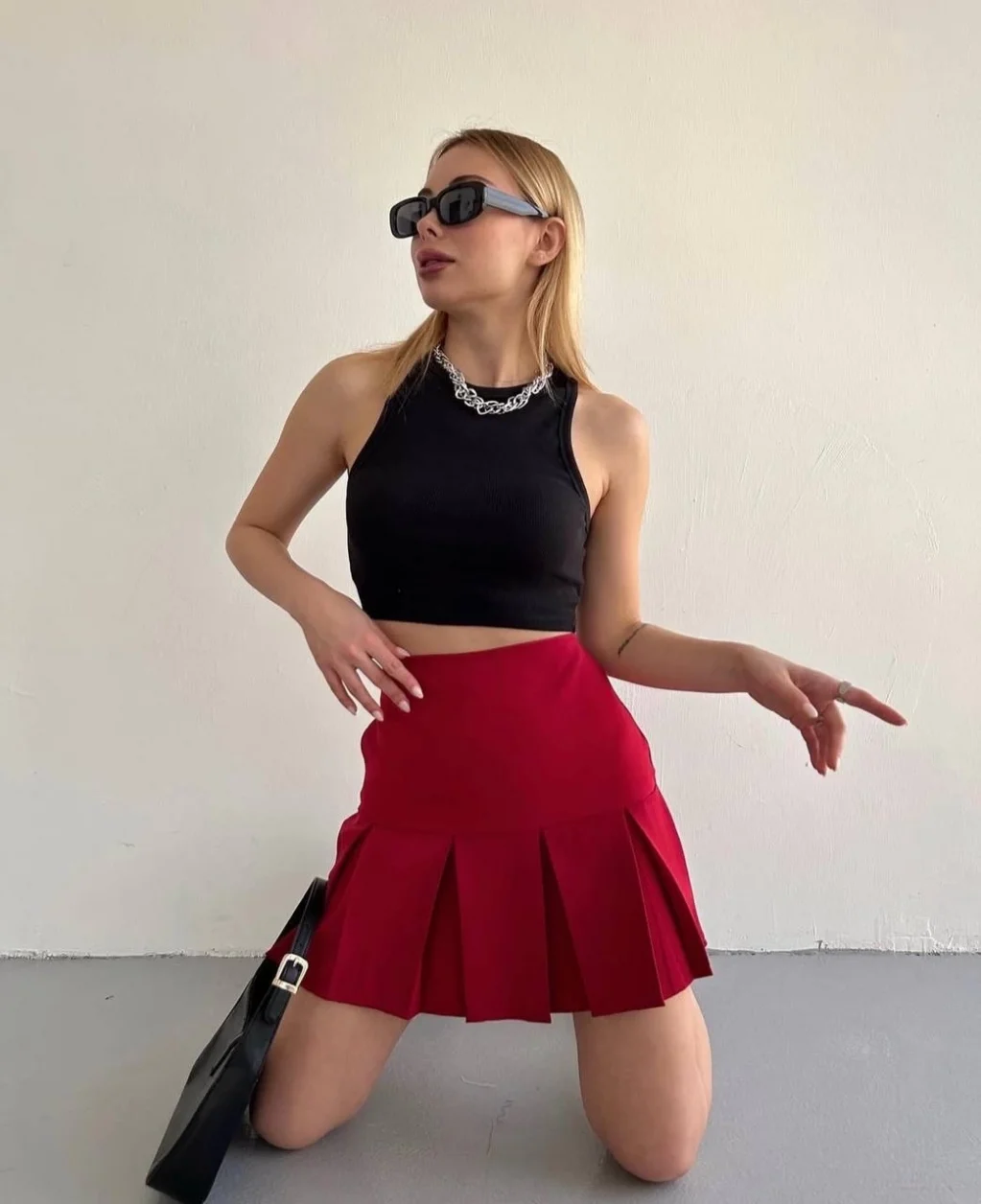 Altı Geniş Pileli Etek, günlük kullanımdan özel davetlere kadar birçok farklı kombinasyon ile rahatlıkla kullanılabilir. Şimdi satın alarak gardırobunuzdaki yerini hemen alın!