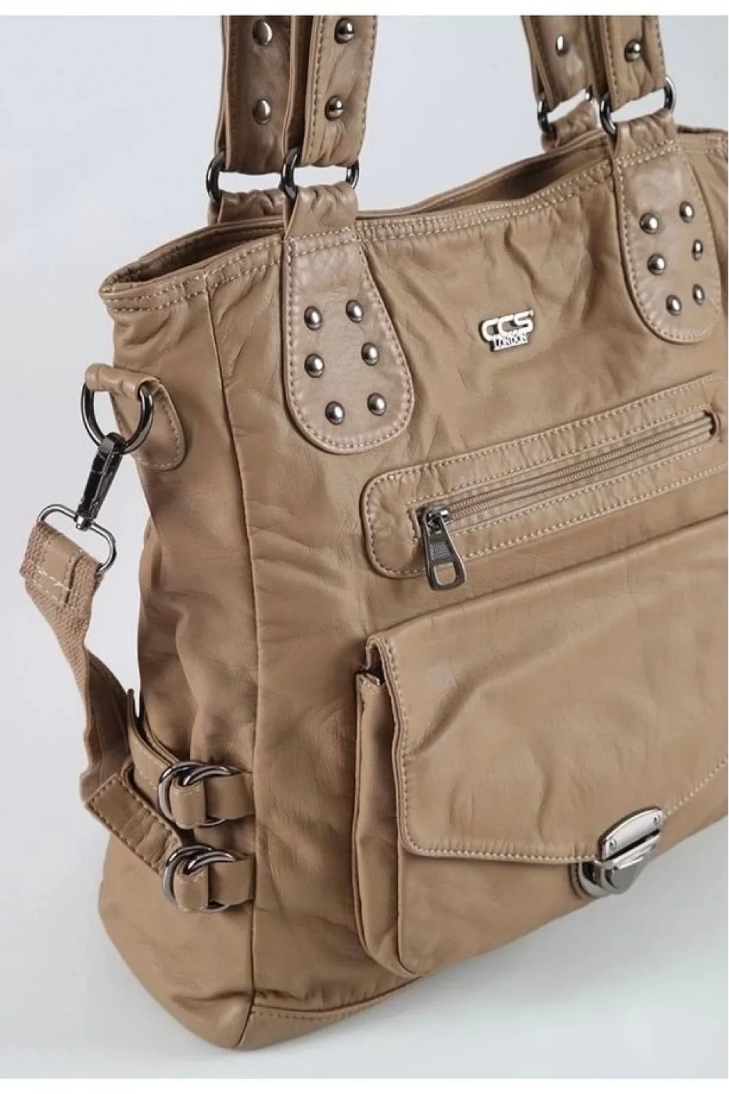modern tasarımı ve çok yönlü kullanım imkanıyla dikkat çeken bir kadın omuz ve sırt çantasıdır. Yıkama deri malzemesi, zarif bir görünüm ve uzun ömürlü kullanım sunar. Hem omuz çantası hem de sırt çantası olarak kullanılabilen bu model, günlük yaşamınızda pratiklik ve şıklığı bir arada sunar.