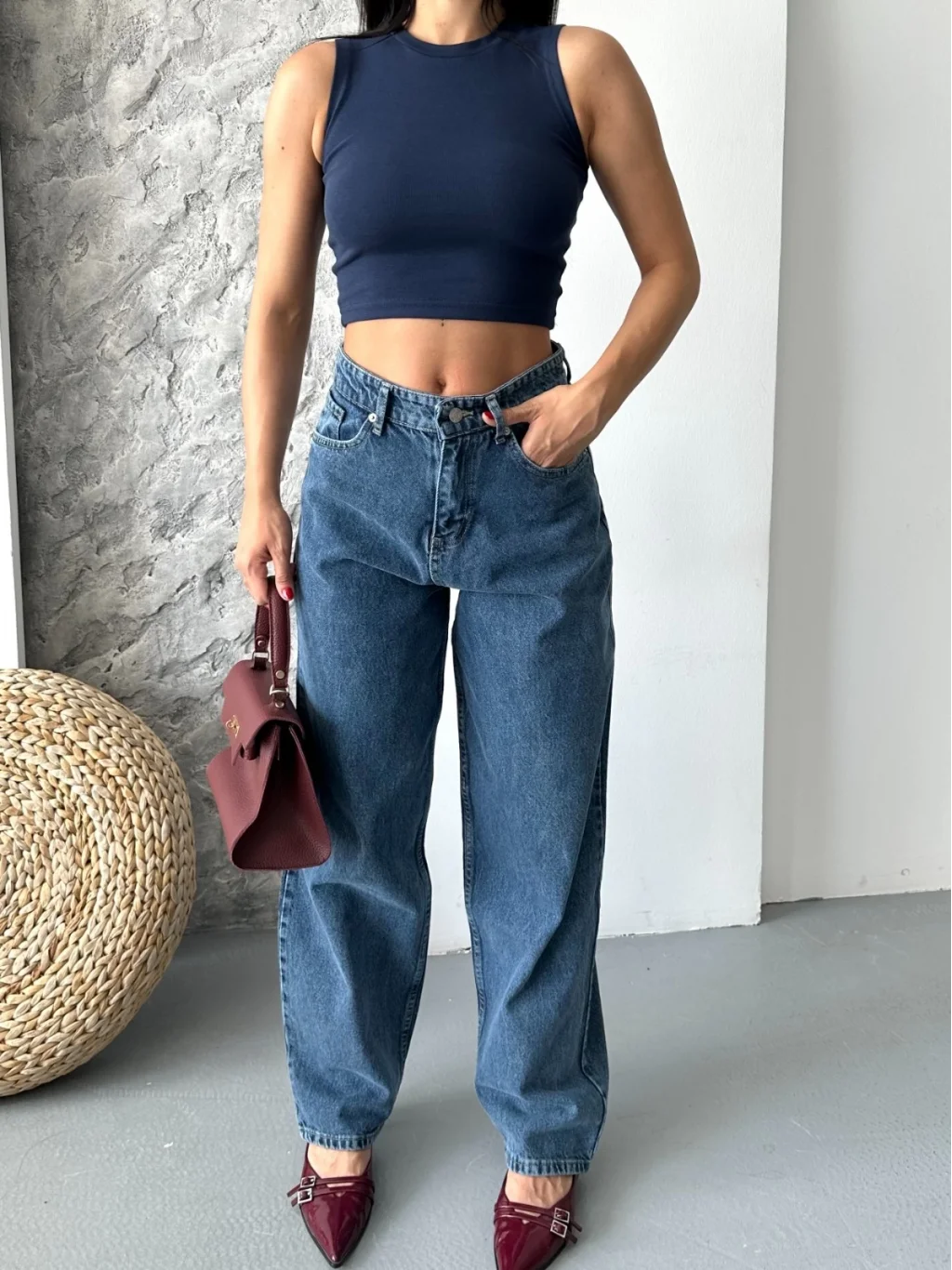 Baggy kar yıkama jeans pantolon koyu mavi d2007, rahatlığı ve şıklığı seven kadınların vazgeçilmezi olmaya aday. Sizin de gardırobunuzda özel bir yer edinmesi için hemen sepetinize ekleyin!