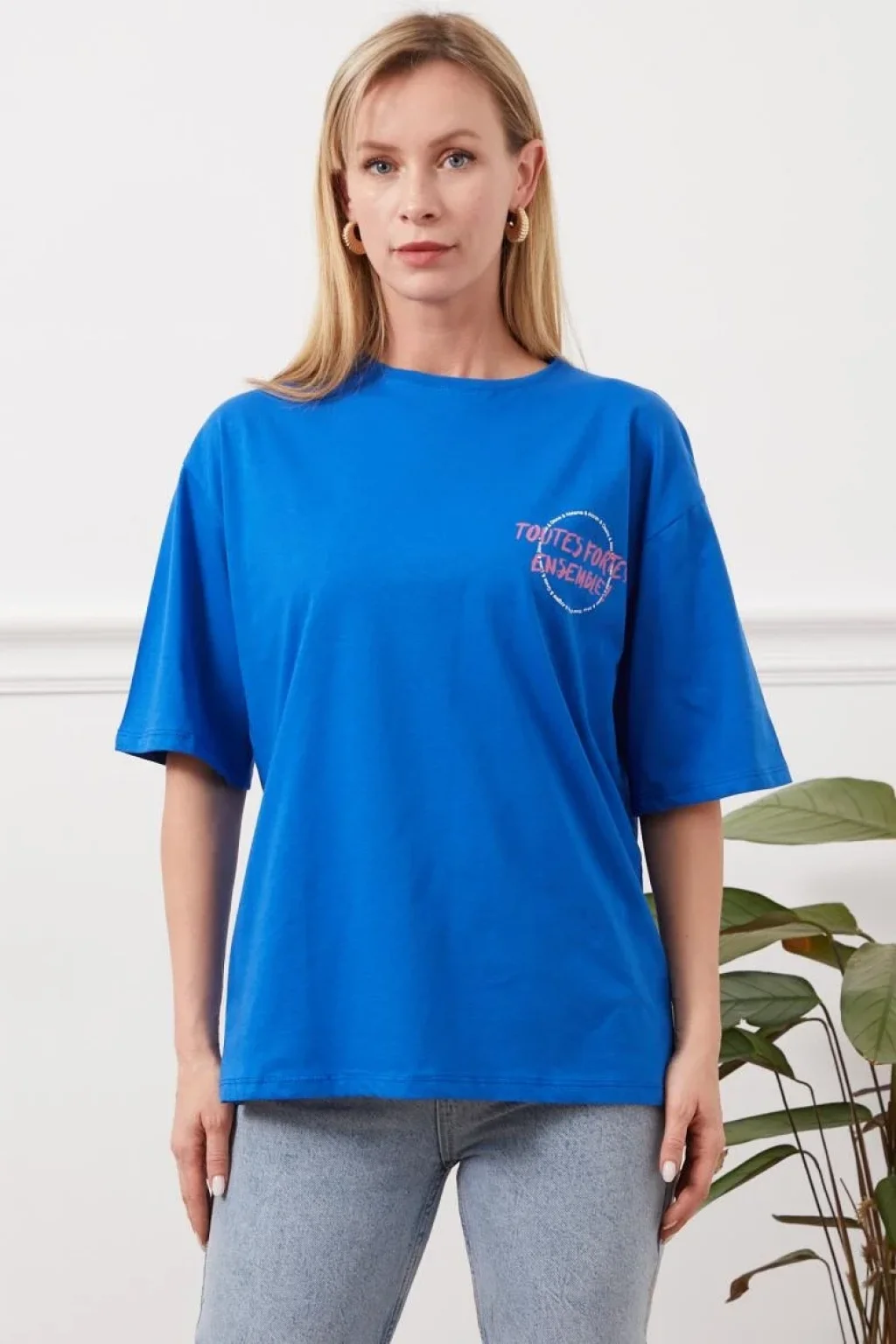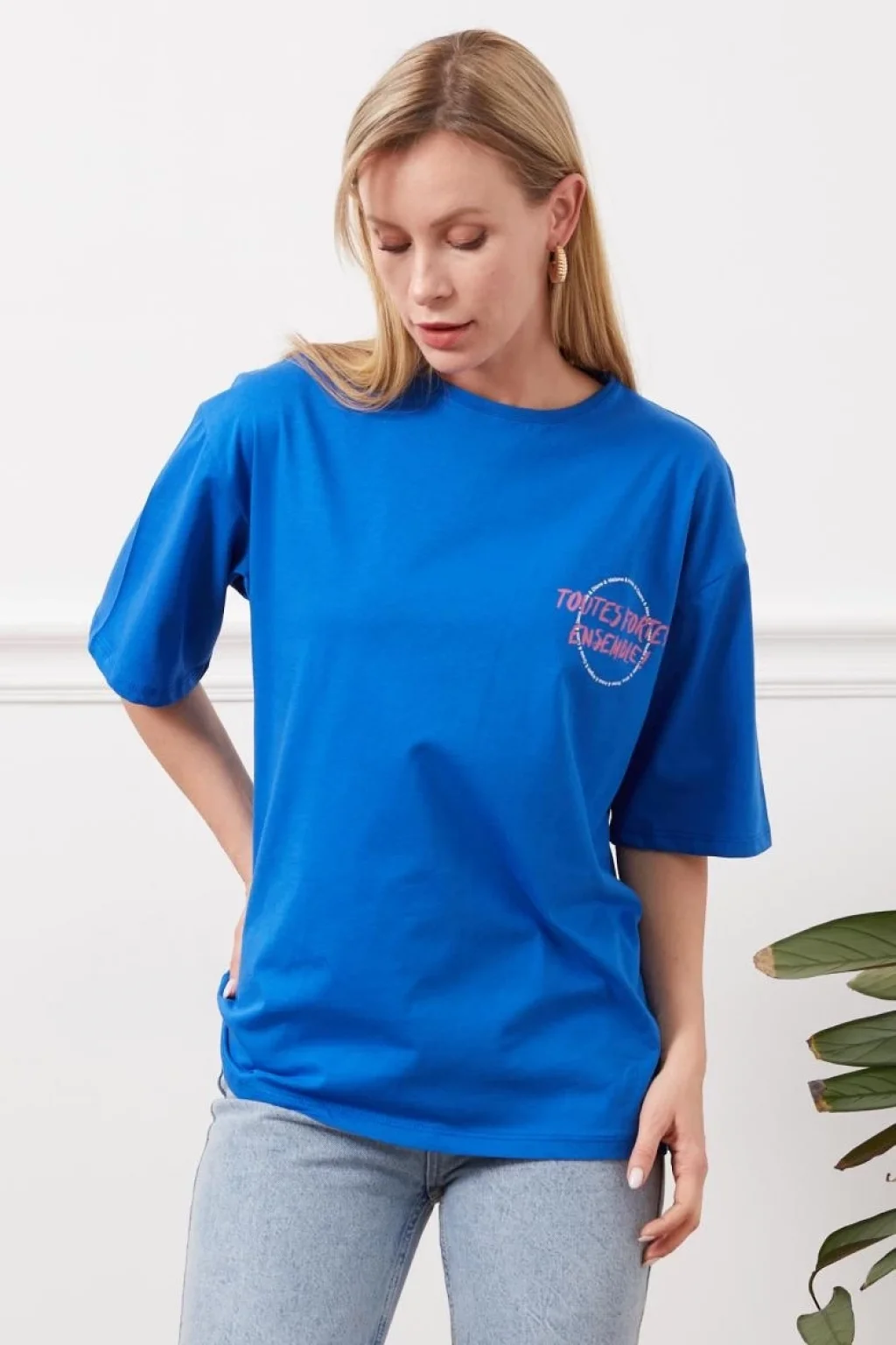 Kadın giyim kategorisinde yer alan bu tişört, her mevsim ve her stilde kullanım için uygundur.