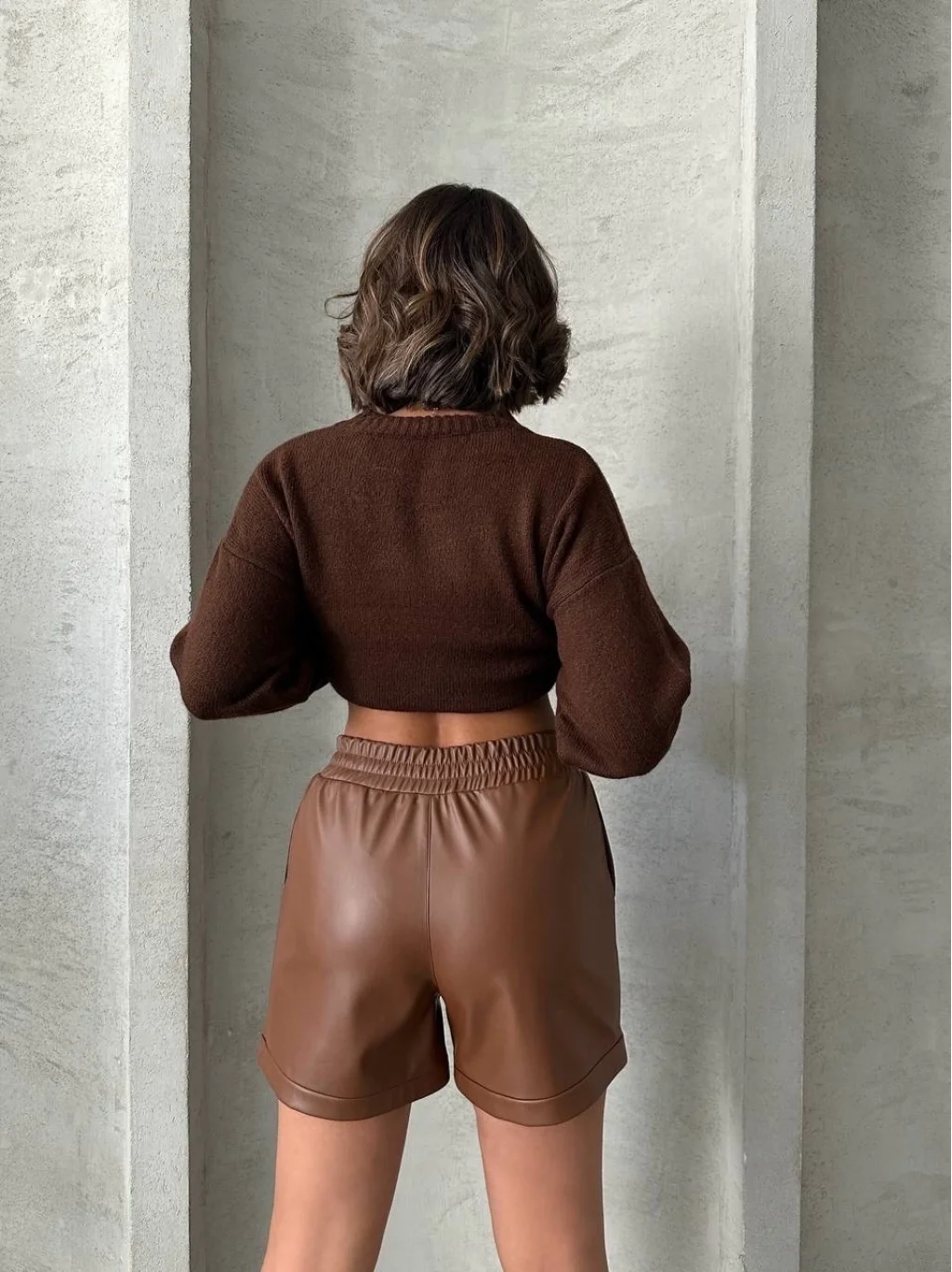 Şıklığı ve rahatlığı bir arada sunan Beli Lastikli Çıtçıtlı Deri Şort ile tarzınızı konuşturun. Kahve rengi ve deri dokusu ile şıklığı ön plana çıkan bu şort, günün her anında şık ve rahat bir görünüm sağlar.