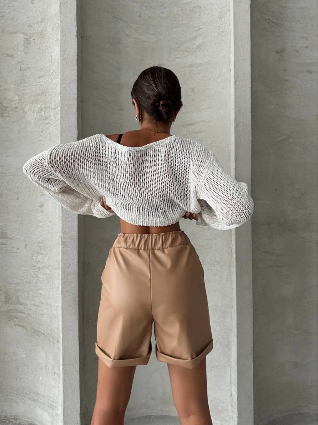 Beli lastikli duble paça deri şort bej w24755, şık ve rahat tasarımıyla öne çıkıyor. İster günlük şıklıkta kullanın, ister özel bir davette. İşte ürünün özellikleri: