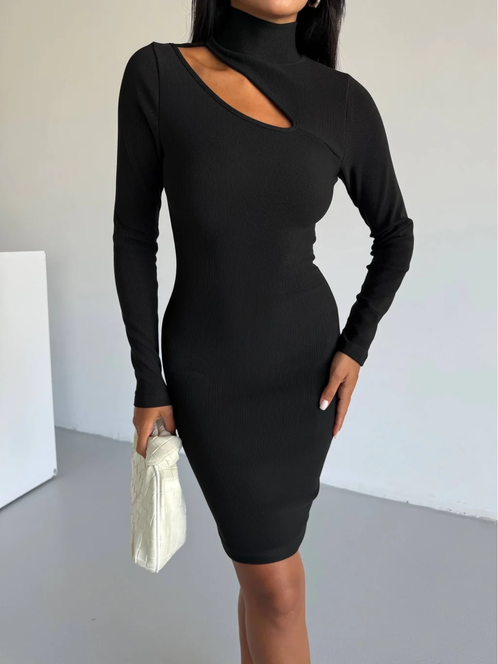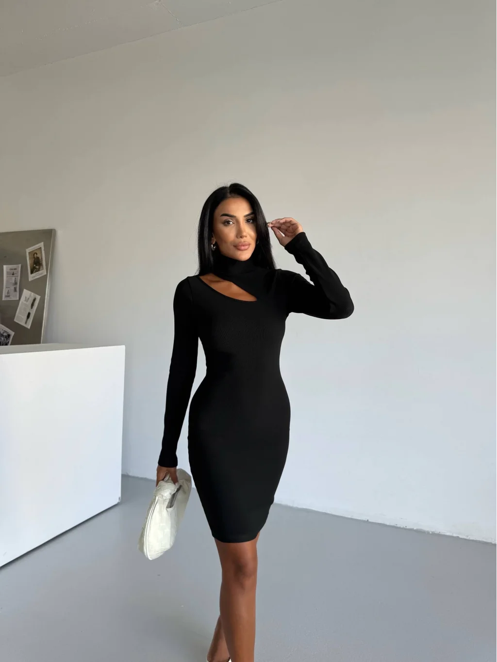 Şıklığınızı ve tarzınızı ön plana çıkarmak istiyorsanız siyah f2333 Boğazlı Göğüs Dekolteli Elbise tam da size göre!