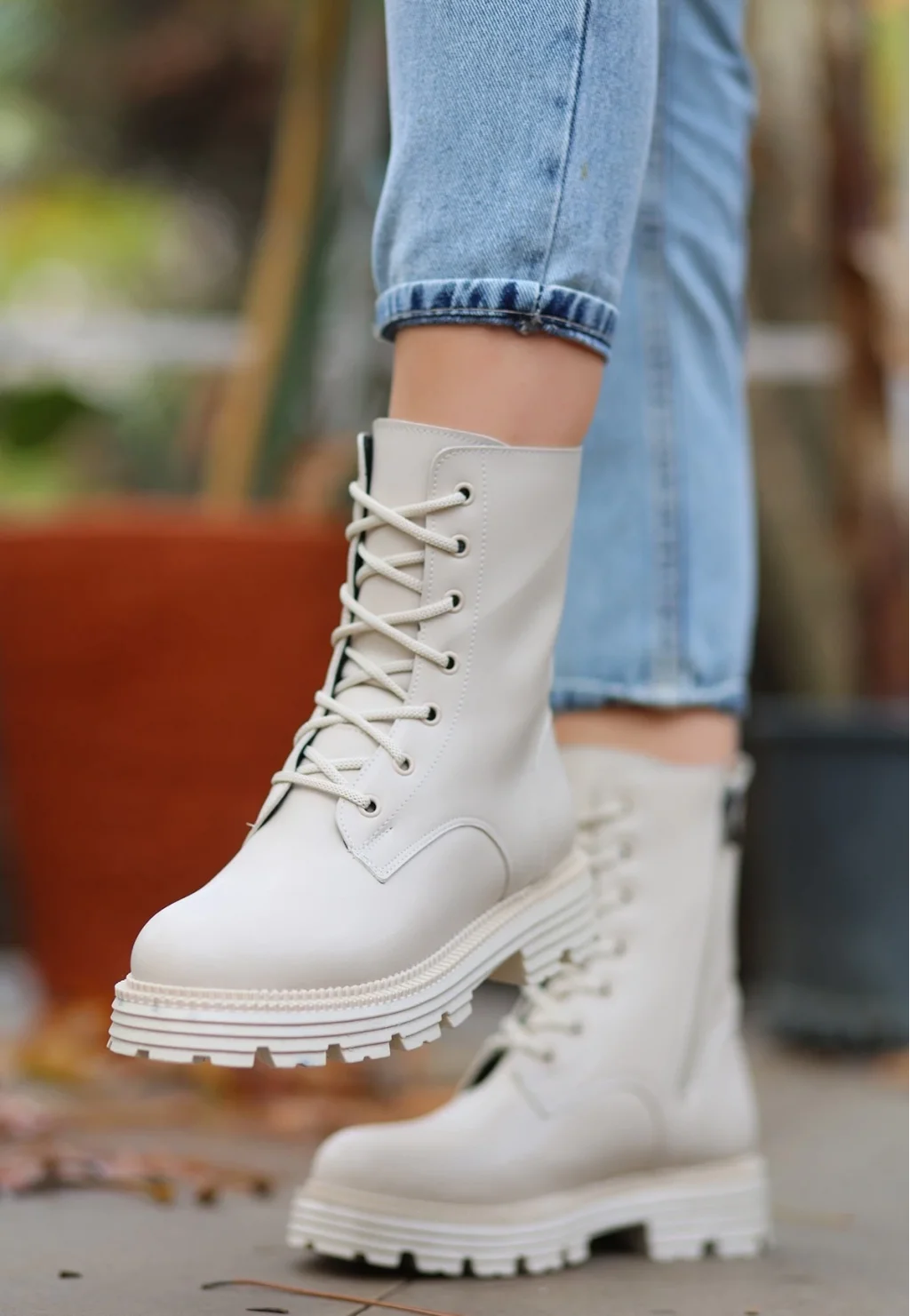 Bria Bej Cilt Bağcıklı Bot