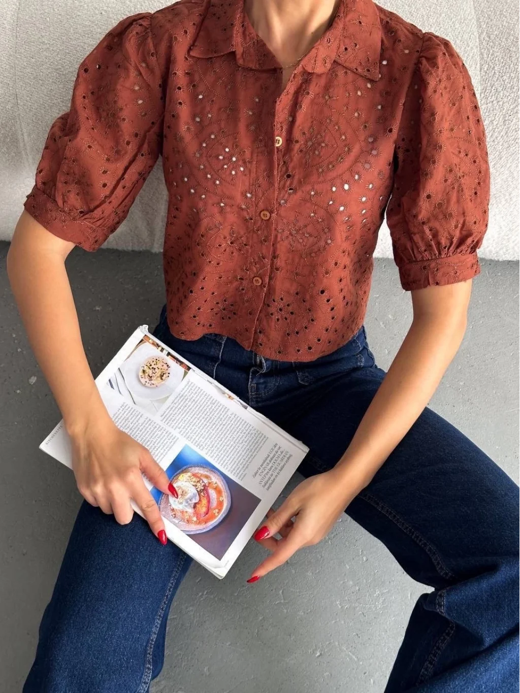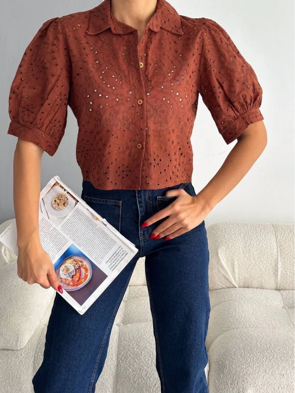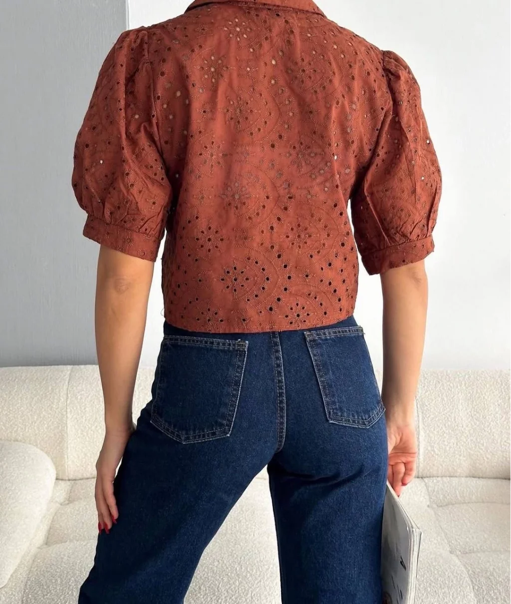 Brodeli Crop Gömlek S1023, gardırobunuzdaki klasik parçalardan farklı bir tarz arayan kadınlar için ideal bir seçimdir. Hemen sepetinize ekleyin ve tarzınızı yansıtın!