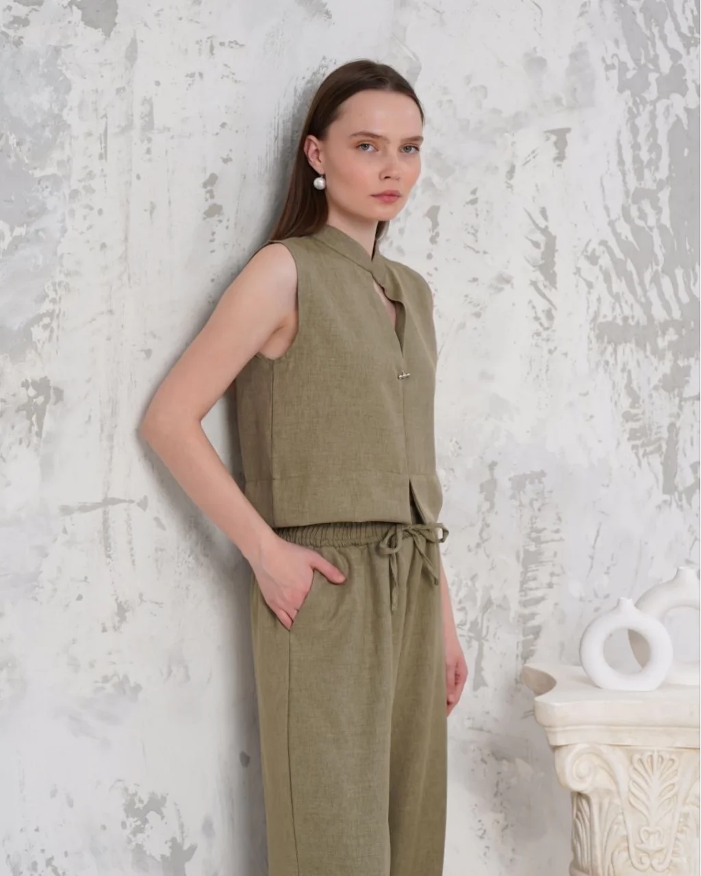 - Yelek ve pantolonun uyumlu kombinasyonu