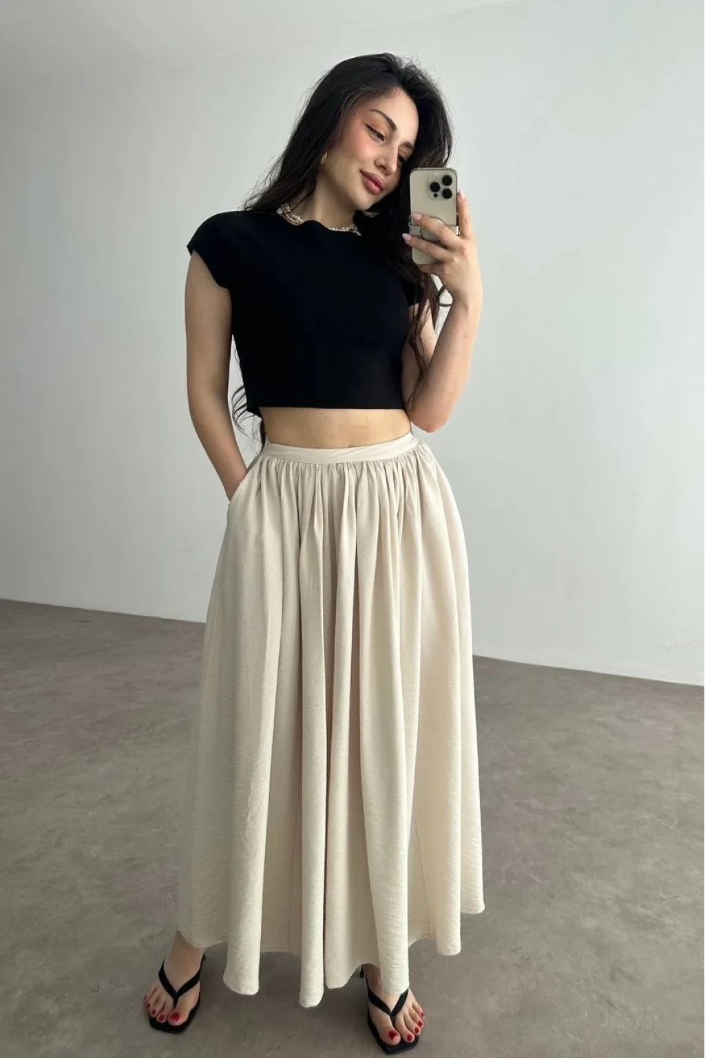 Günlük kullanıma uygun CEPLİ KETEN ETEK KZ24, şıklığı ve konforu bir arada arayan kadınların favorisi olmaya aday!