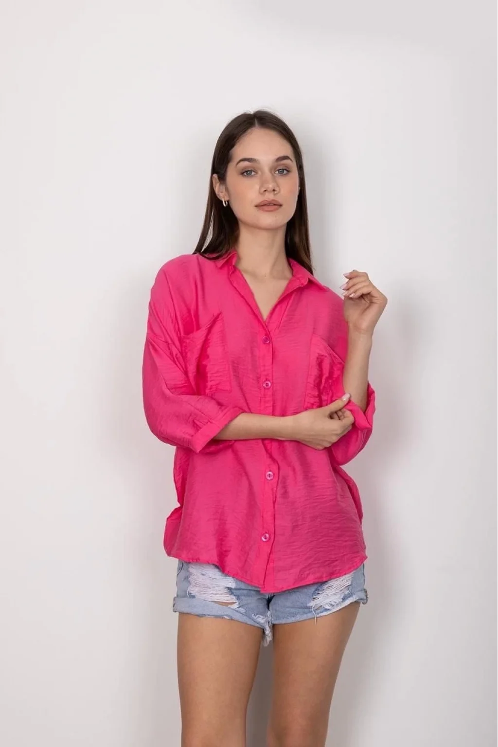 CEPLİ SALAŞ GÖMLEK T1010, şıklık ve rahatlığı bir arada sunan bir kadın giyim ürünüdür.