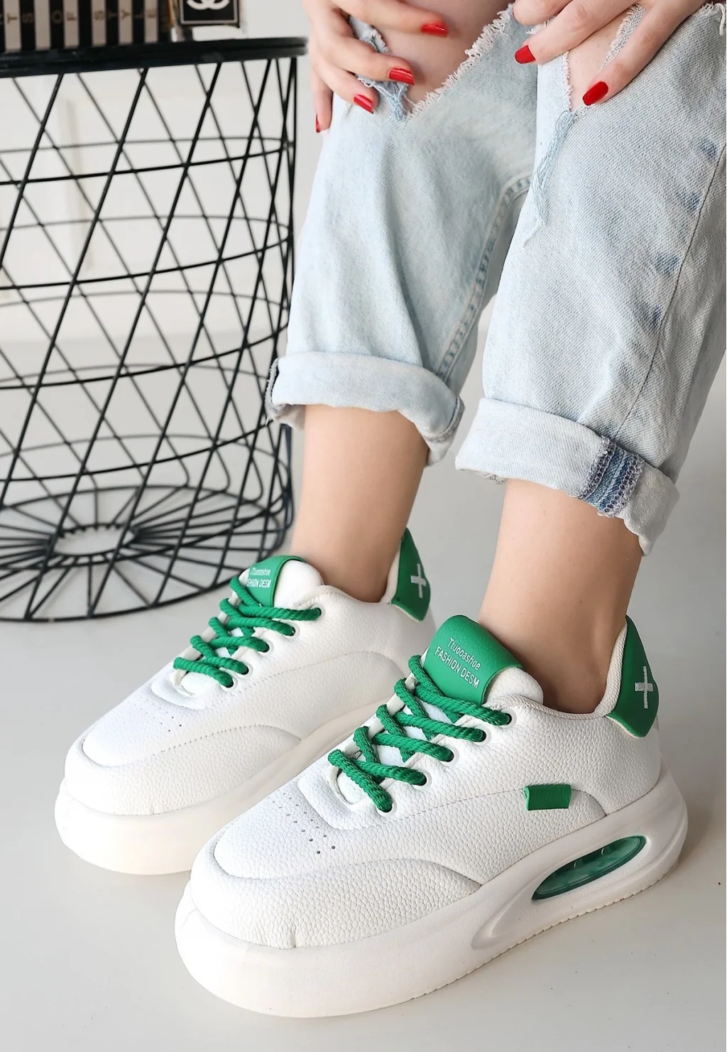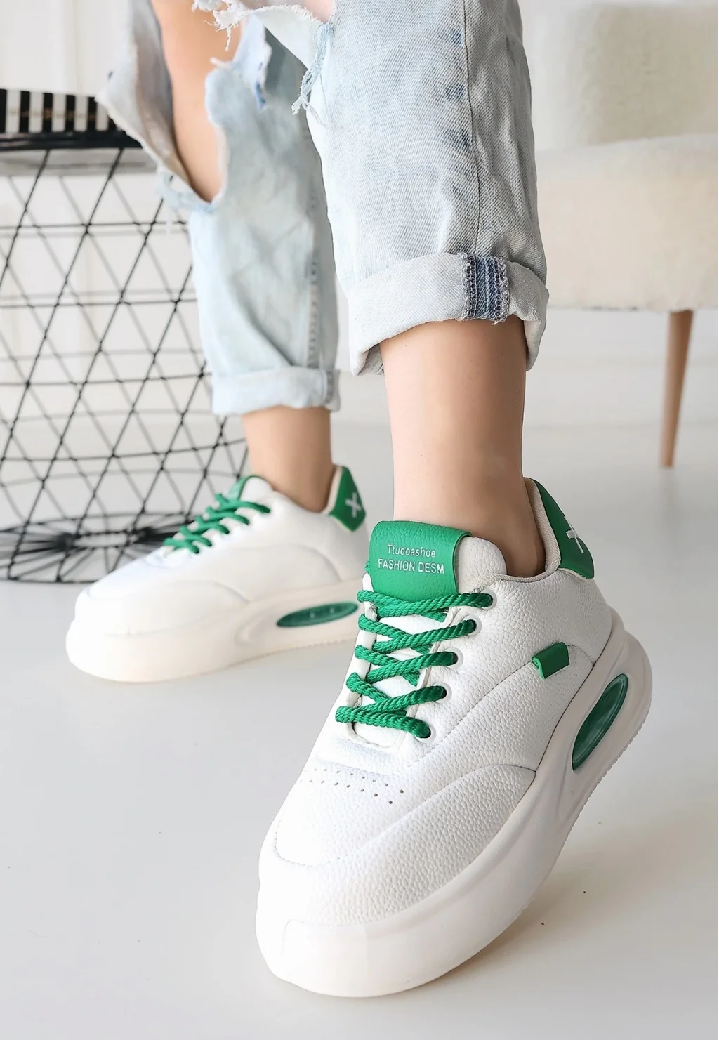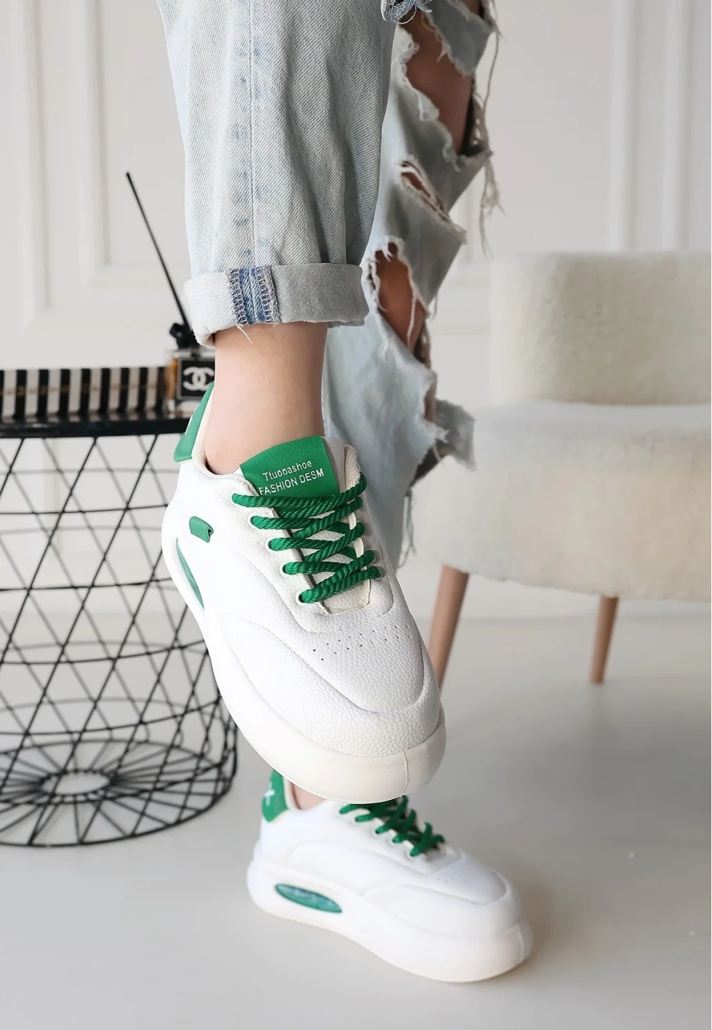 Chris Beyaz Cilt Yeşil Detaylı Bağcıklı Spor Ayakkabı