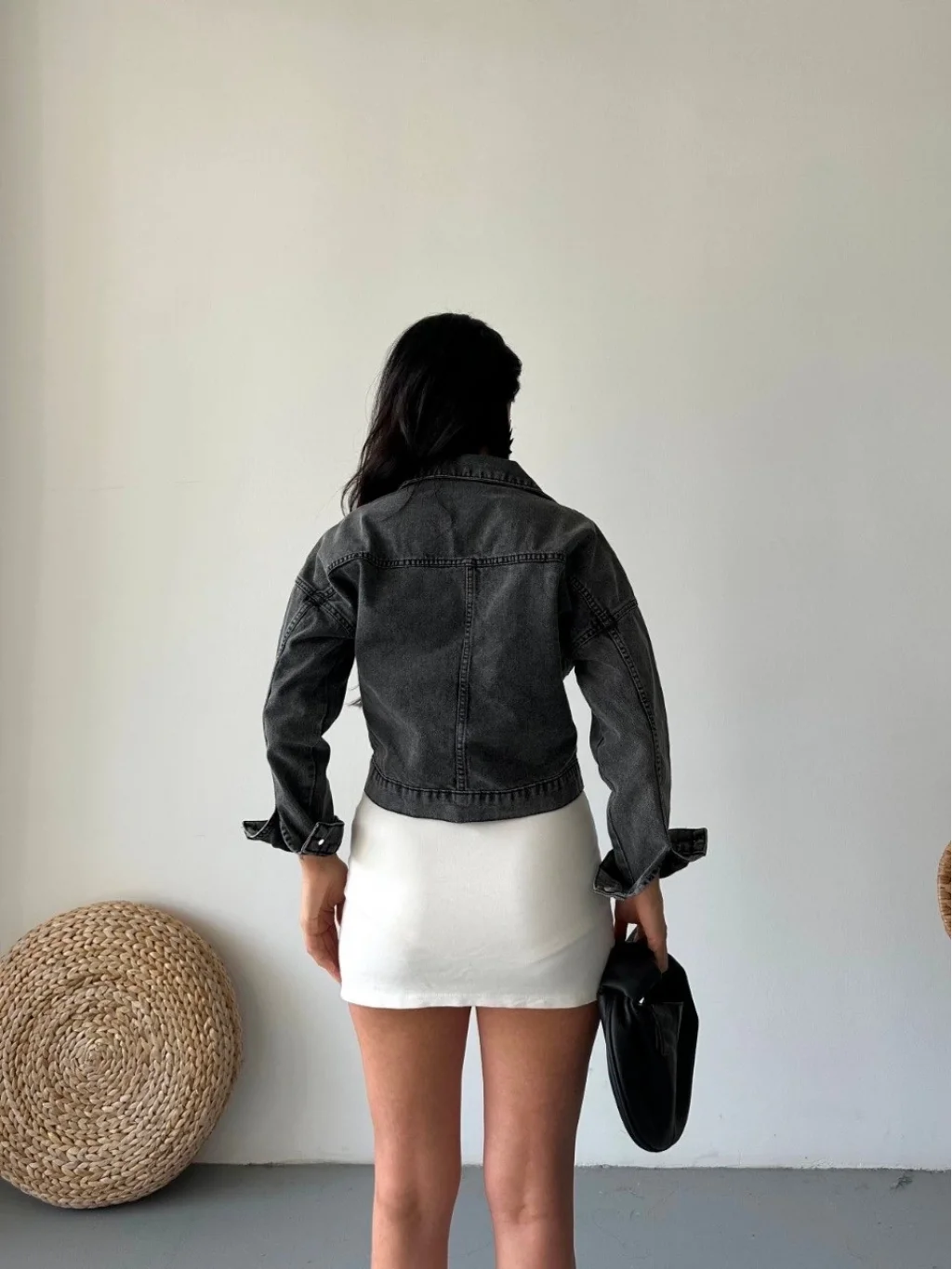 Şıklığı ve rahatlığı bir arada sunan bu crop kot ceketi kıyafet kombinlerinizin vazgeçilmez parçası haline getirebilirsiniz.