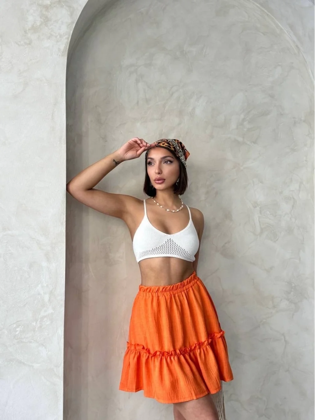Bu şık ve rahat eteği günlük hayatta, arkadaş buluşmalarında ya da tatil günlerinde tercih edebilir, şıklığınızı konuşturabilirsiniz. Çingene keten etek turuncu s24808, gardırobunuzun vazgeçilmez parçalarından biri olmaya aday!