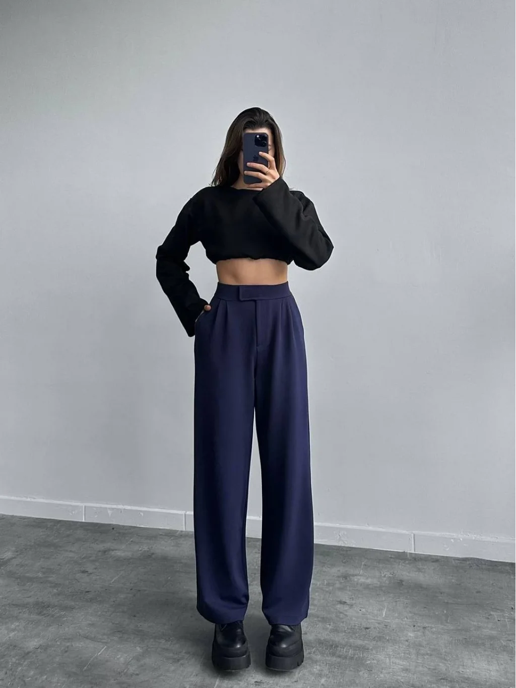 Şıklığı ve rahatlığı bir arada arayan kadınların favorisi olan KAZAX cırtlı palazzo pantolonuyla her zaman şık hissedeceksiniz.