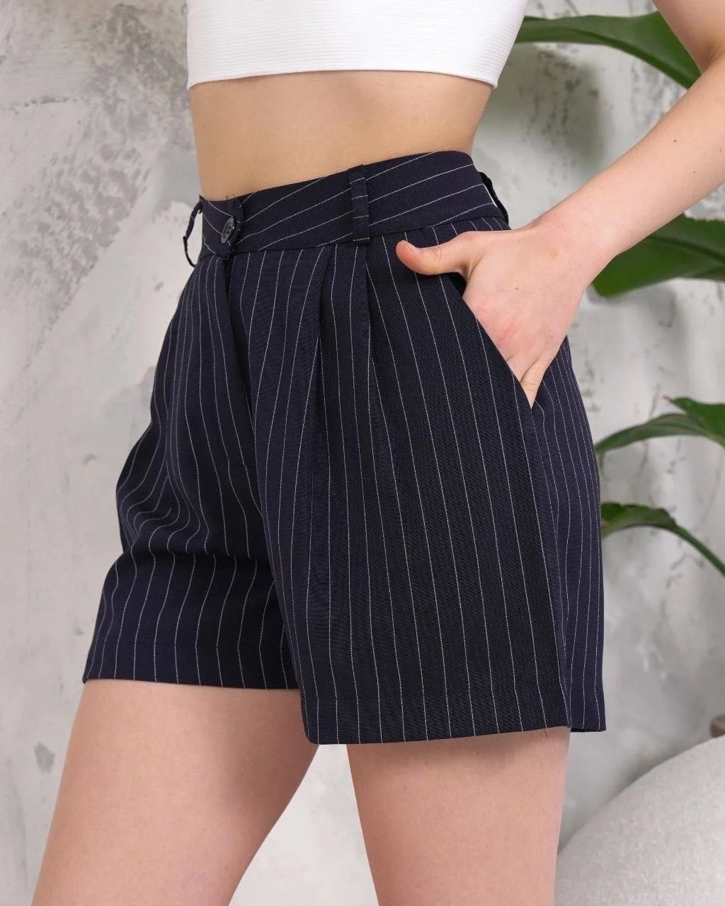 Çizgili düğmeli şort siyah s2551251, gardırobunuzun vazgeçilmez parçalarından biri olmaya aday!