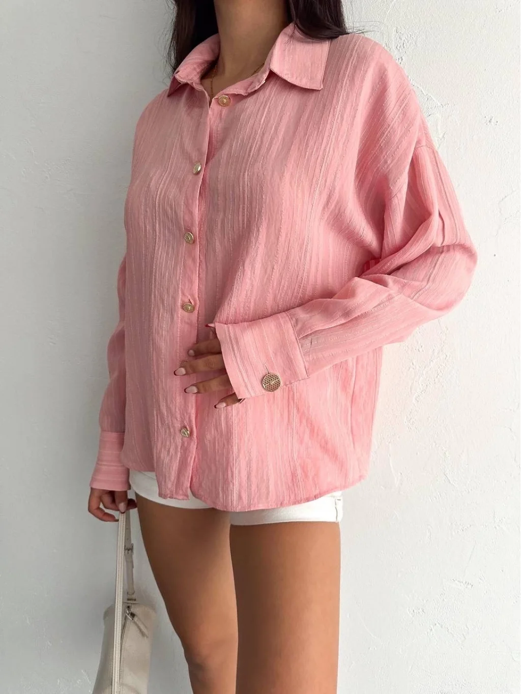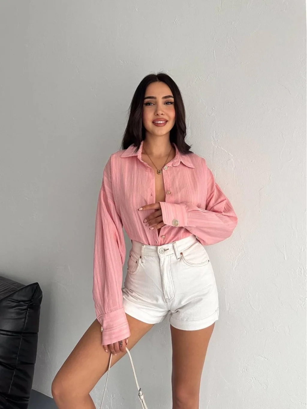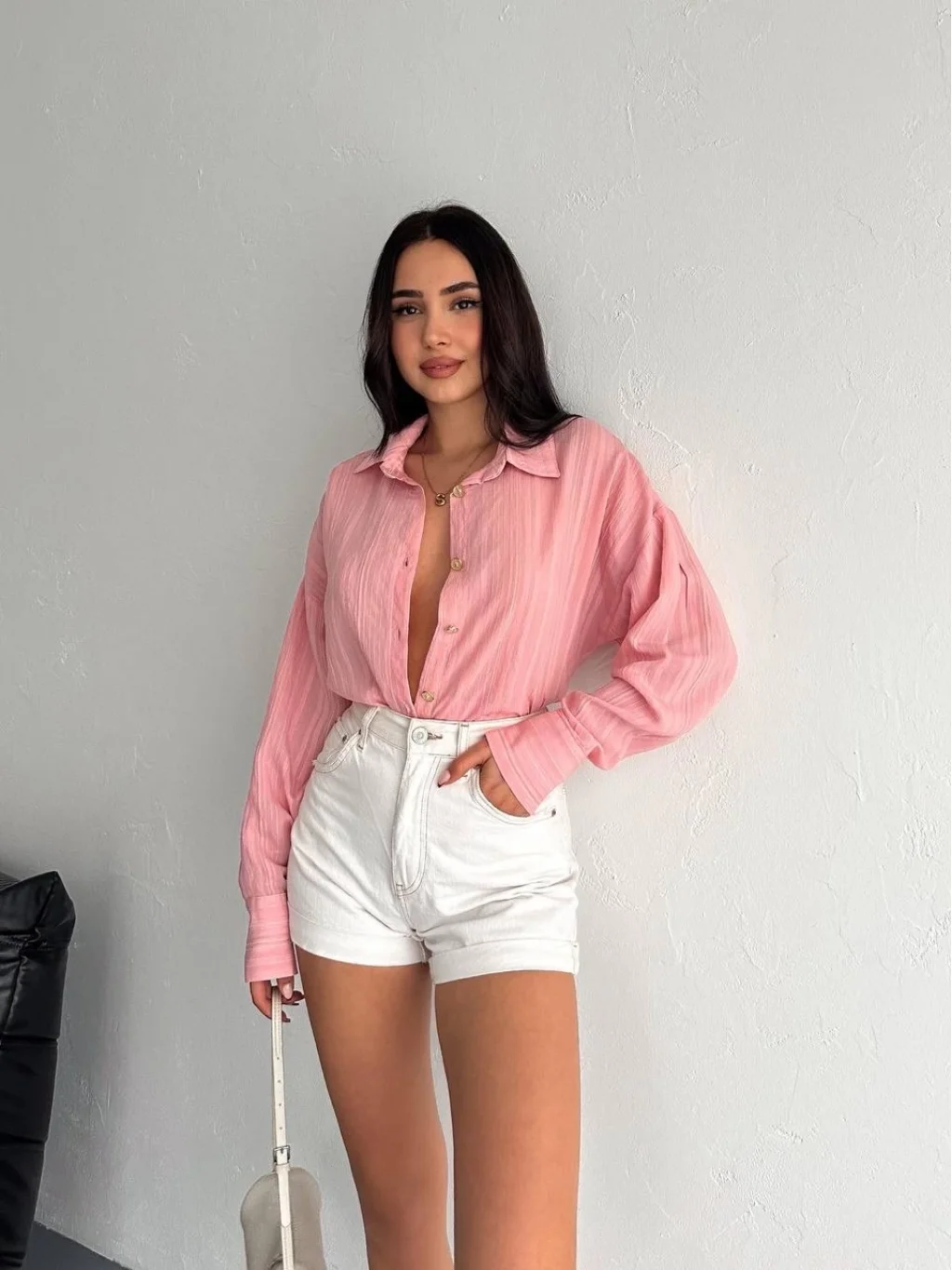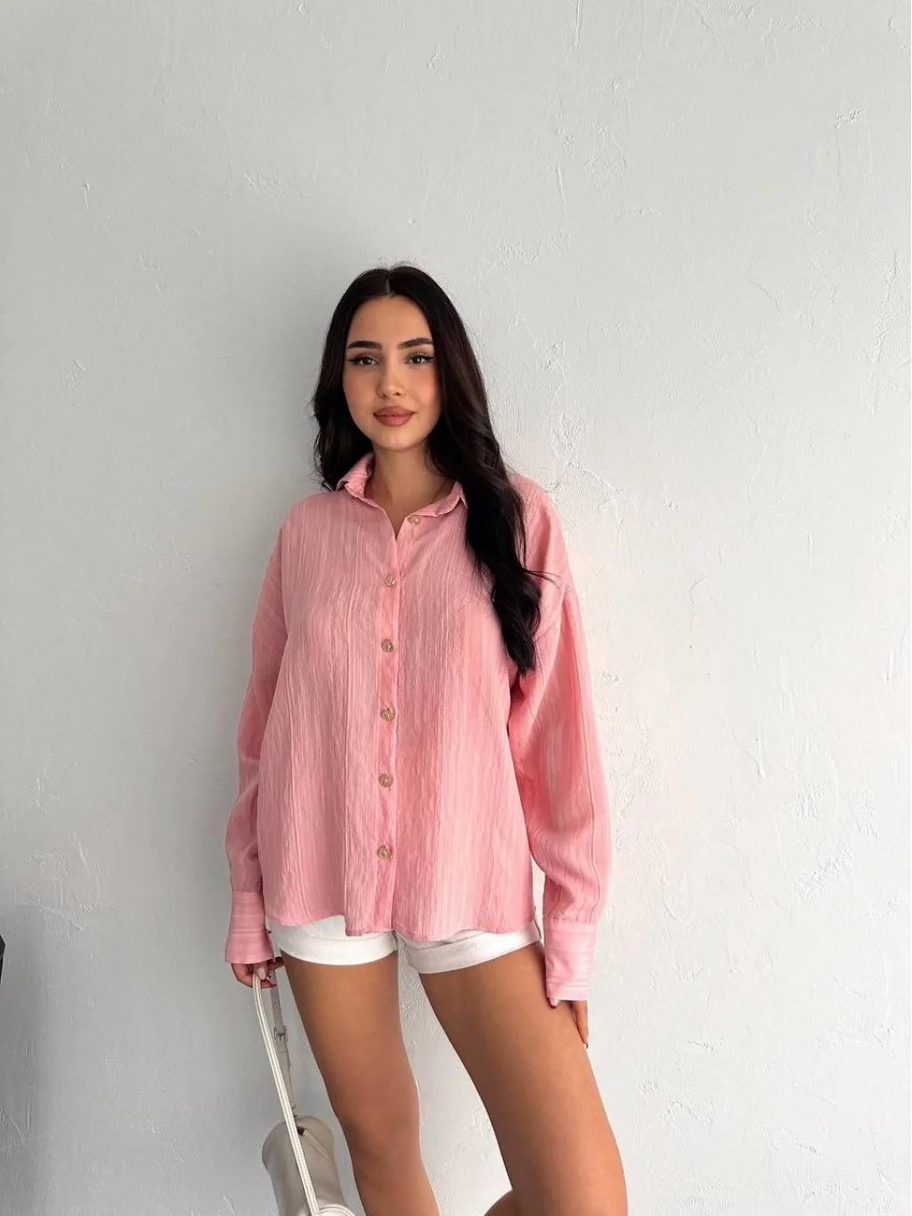 KAZAX Çizgili Oversize Gömlek, salaş ve rahat bir görünüm arayan kadınlar için ideal bir seçenektir.