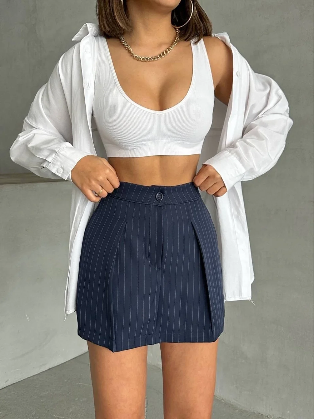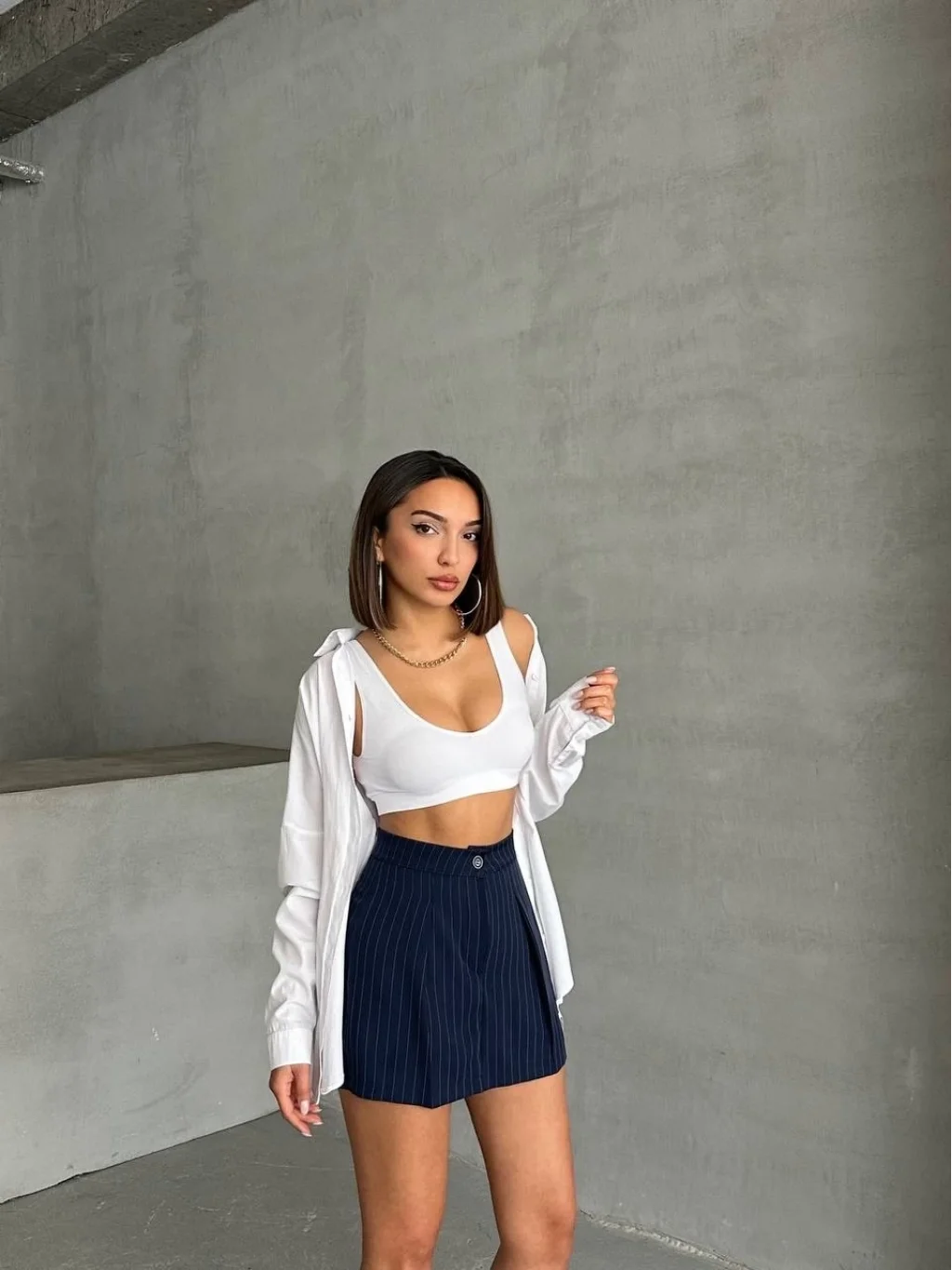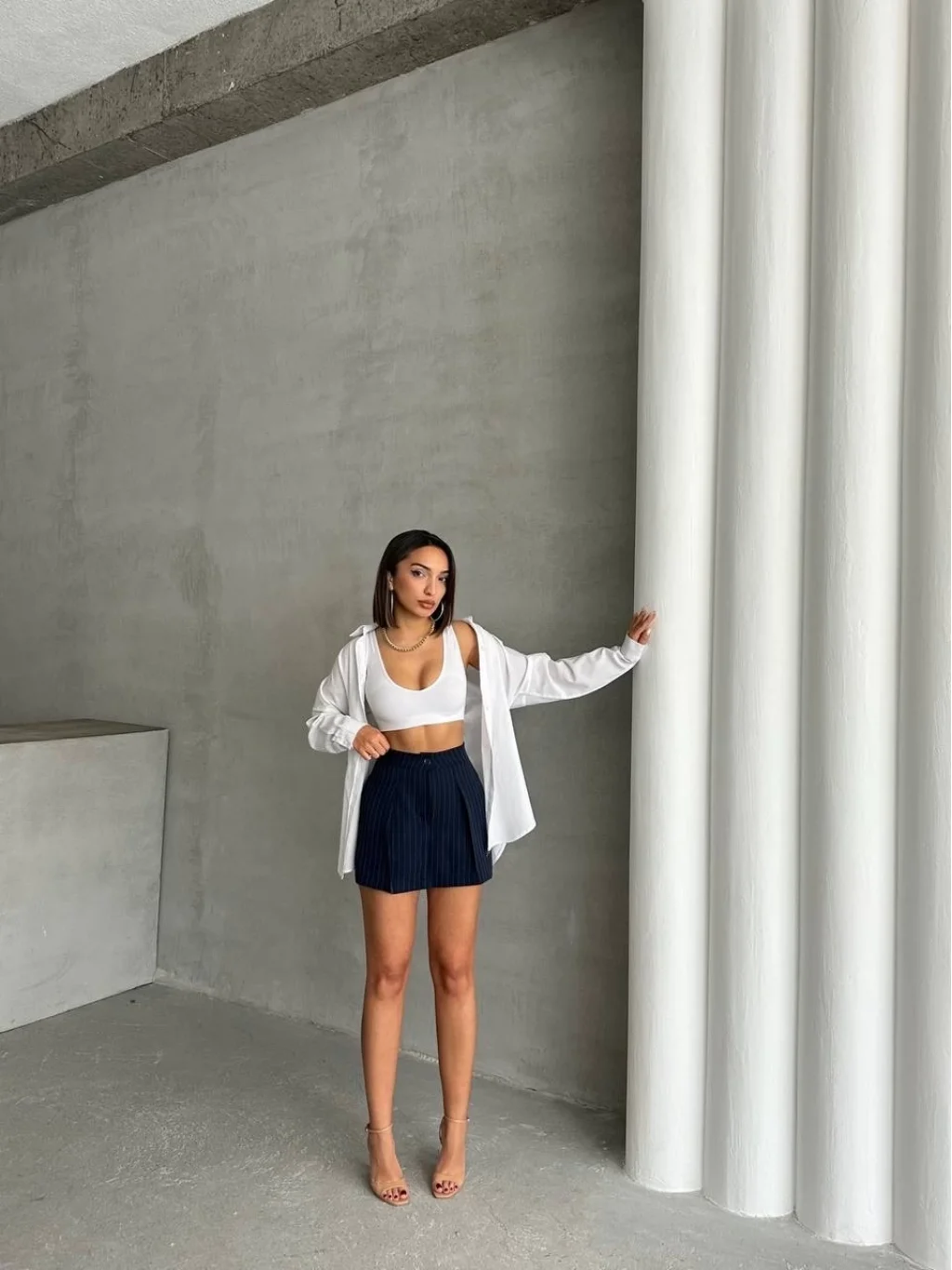 KAZAX çizgili şort etek, yaz aylarının vazgeçilmezi olmaya aday!