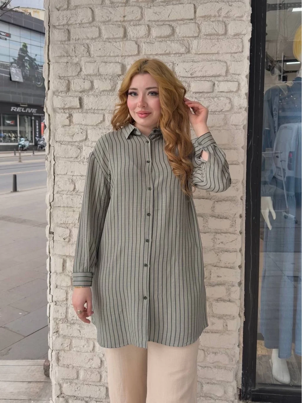 KAZAX çizgili tunik gömlek ile tarzınızı yansıtın. Şıklık ve konforu bir arada yaşayın!