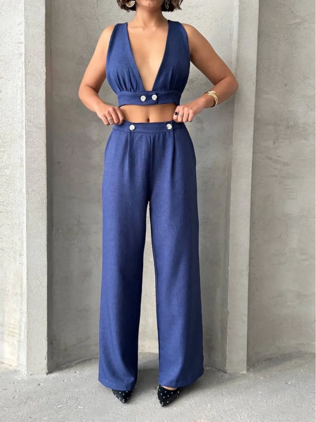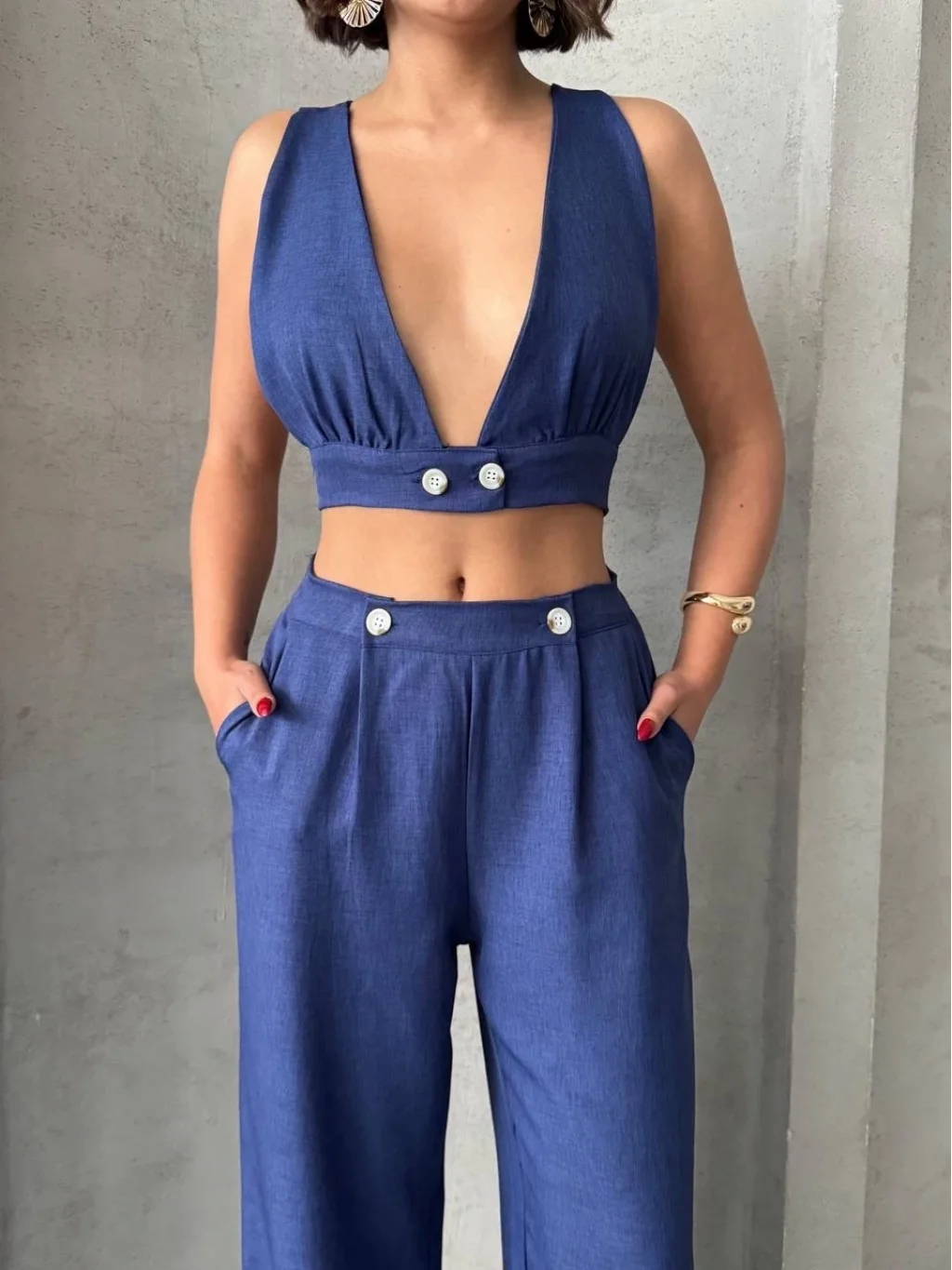 Ürün Adı: Crop Pantolon Keten Takım S255012