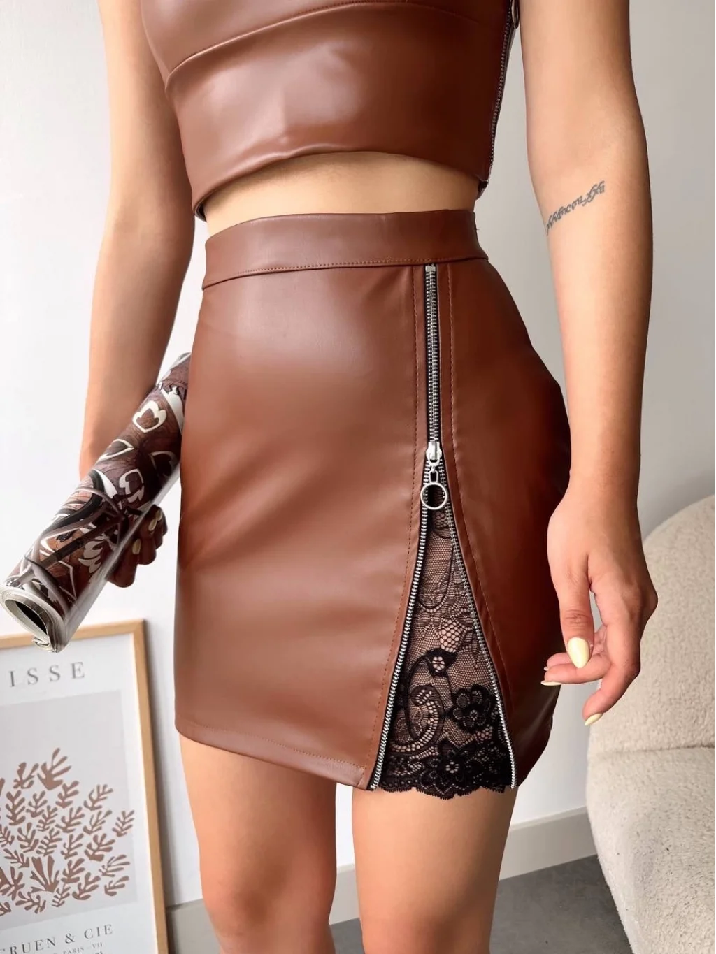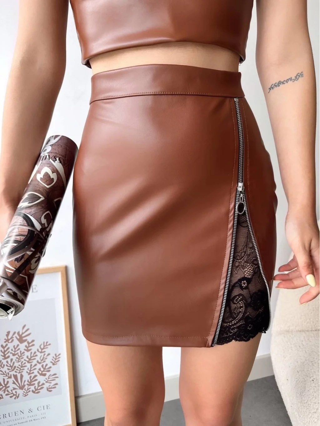 Şıklığı ve rahatlığı bir arada arayan kadınların favorisi olmaya aday Dantelli Fermuarlı Deri Etek'i hemen sepetinize ekleyin!