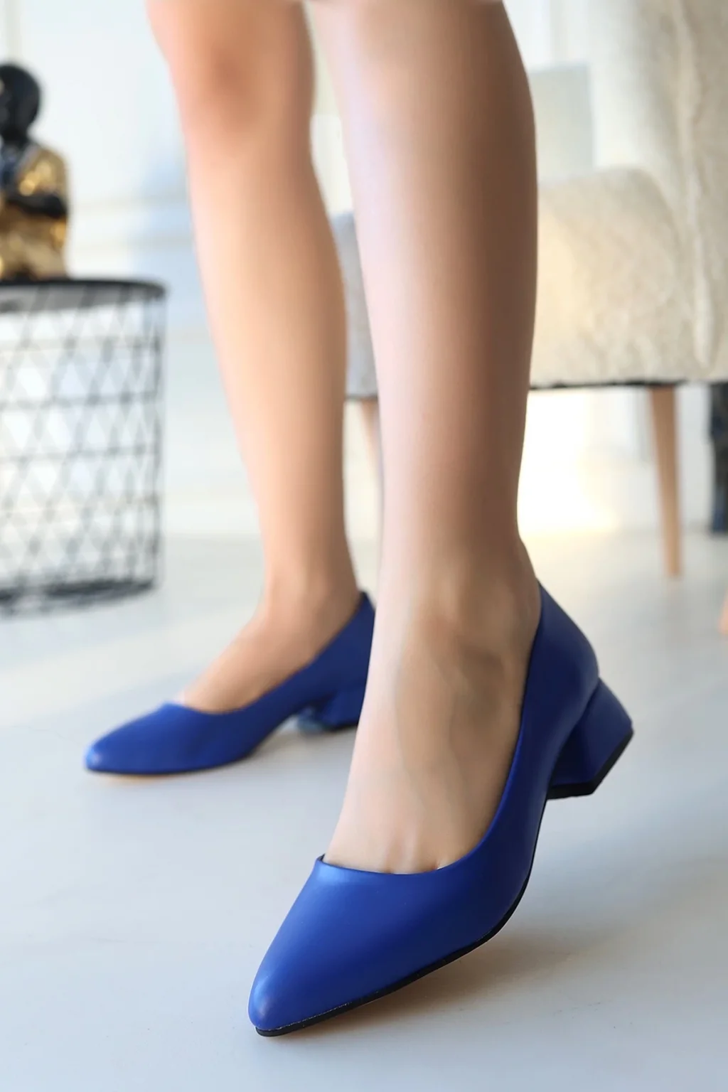 Desniy Mavi Cilt Topuklu Ayakkabı