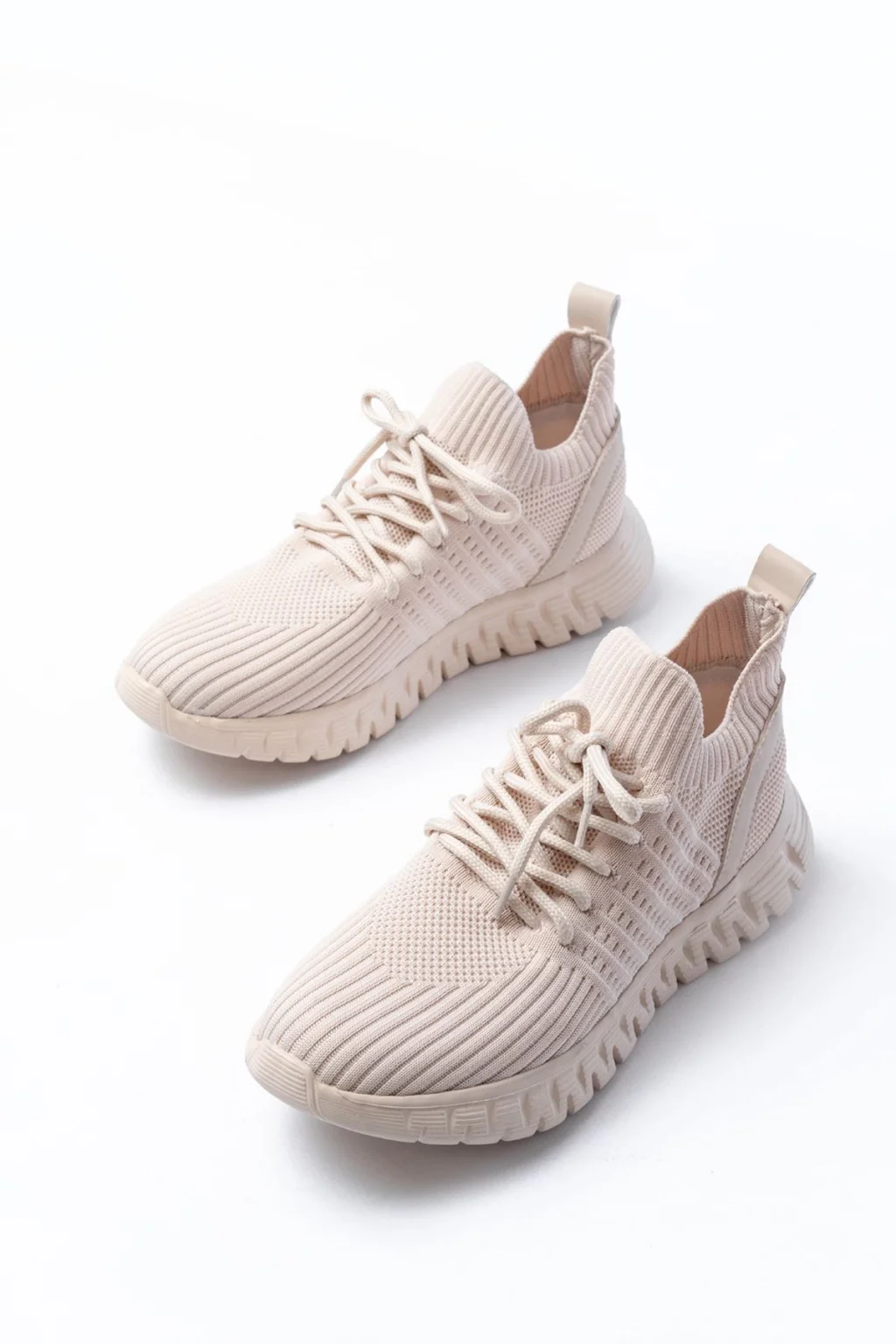 Finna Bej Cilt Bağcıklı Spor Ayakkabı