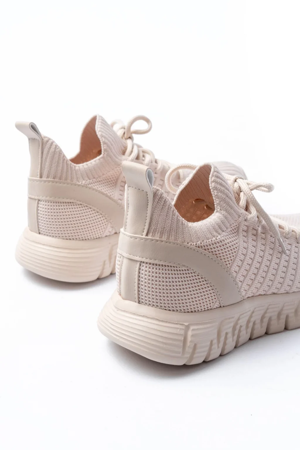 Emwa Bej Cilt Bağcıklı Spor Ayakkabı