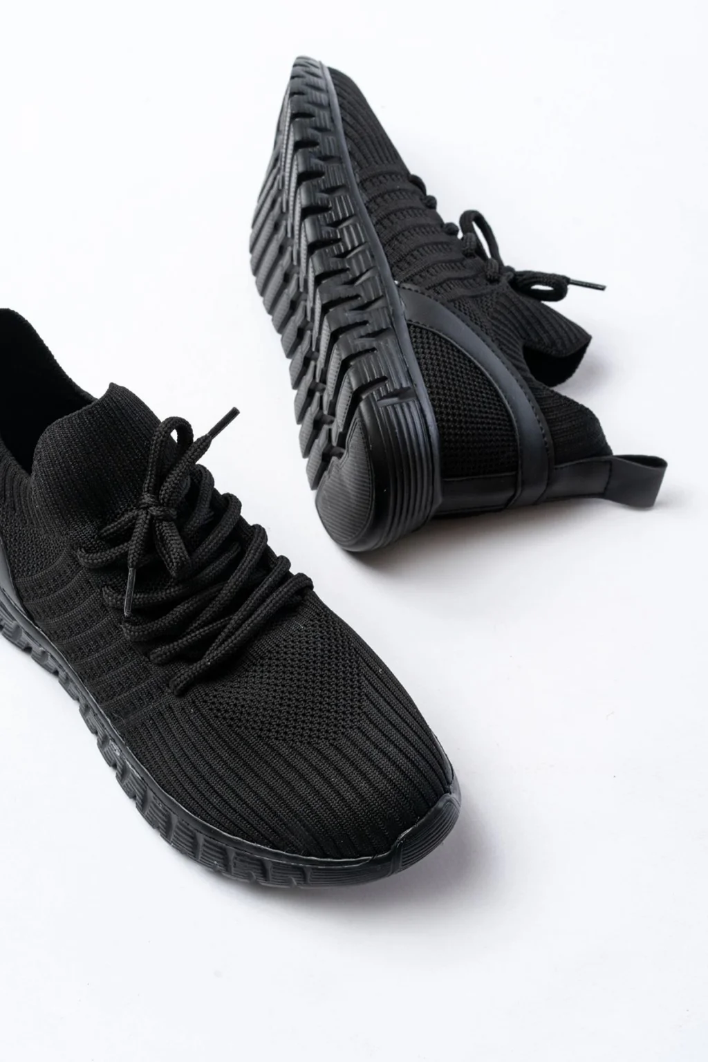 Natte Siyah Cilt Bağcıklı Spor Ayakkabı