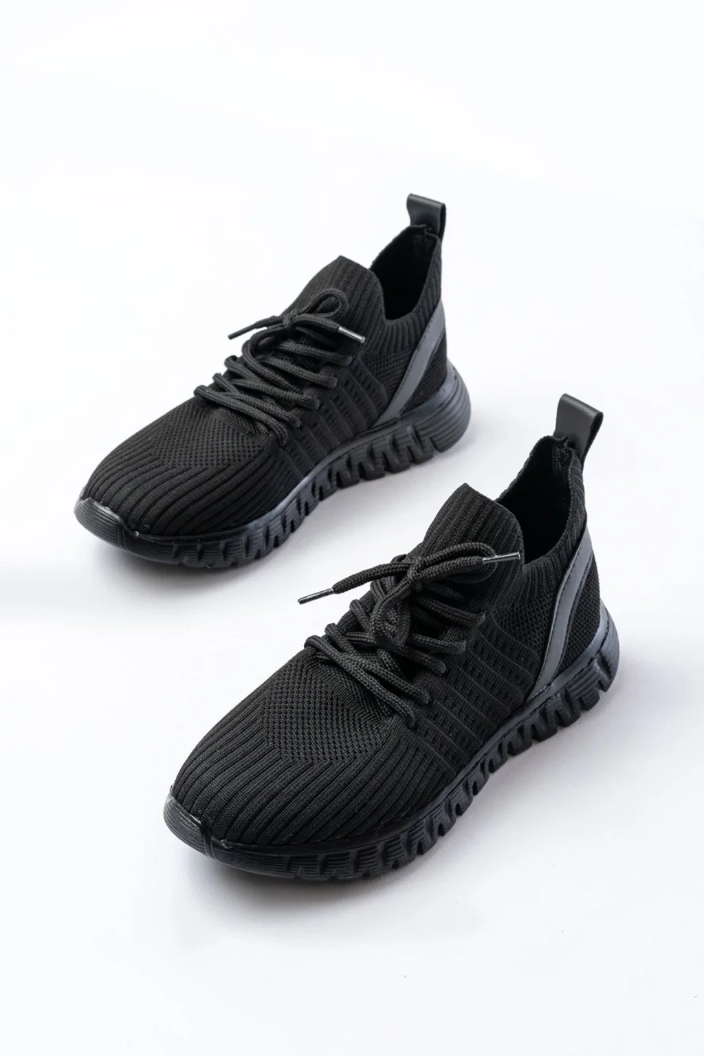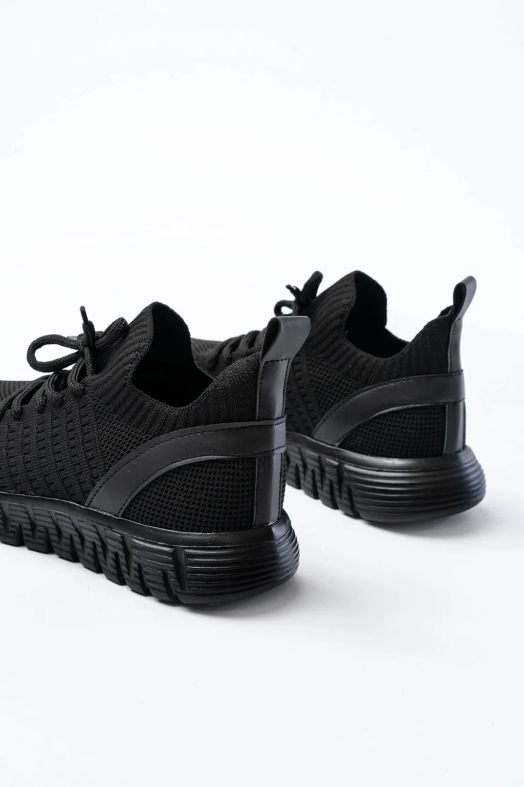 Natte Siyah Cilt Bağcıklı Spor Ayakkabı