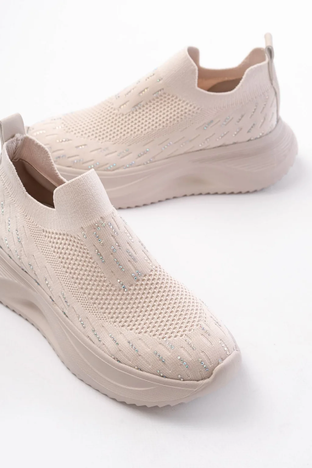 Rimay Kahverengi Cilt Boncuk İşlemeli Spor Ayakkabı