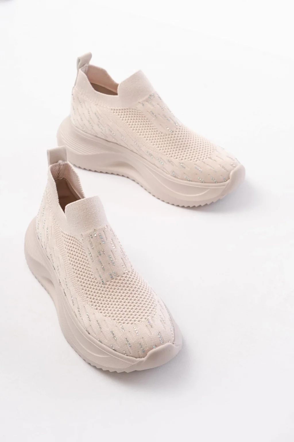 Emwa Bej Cilt Bağcıklı Spor Ayakkabı