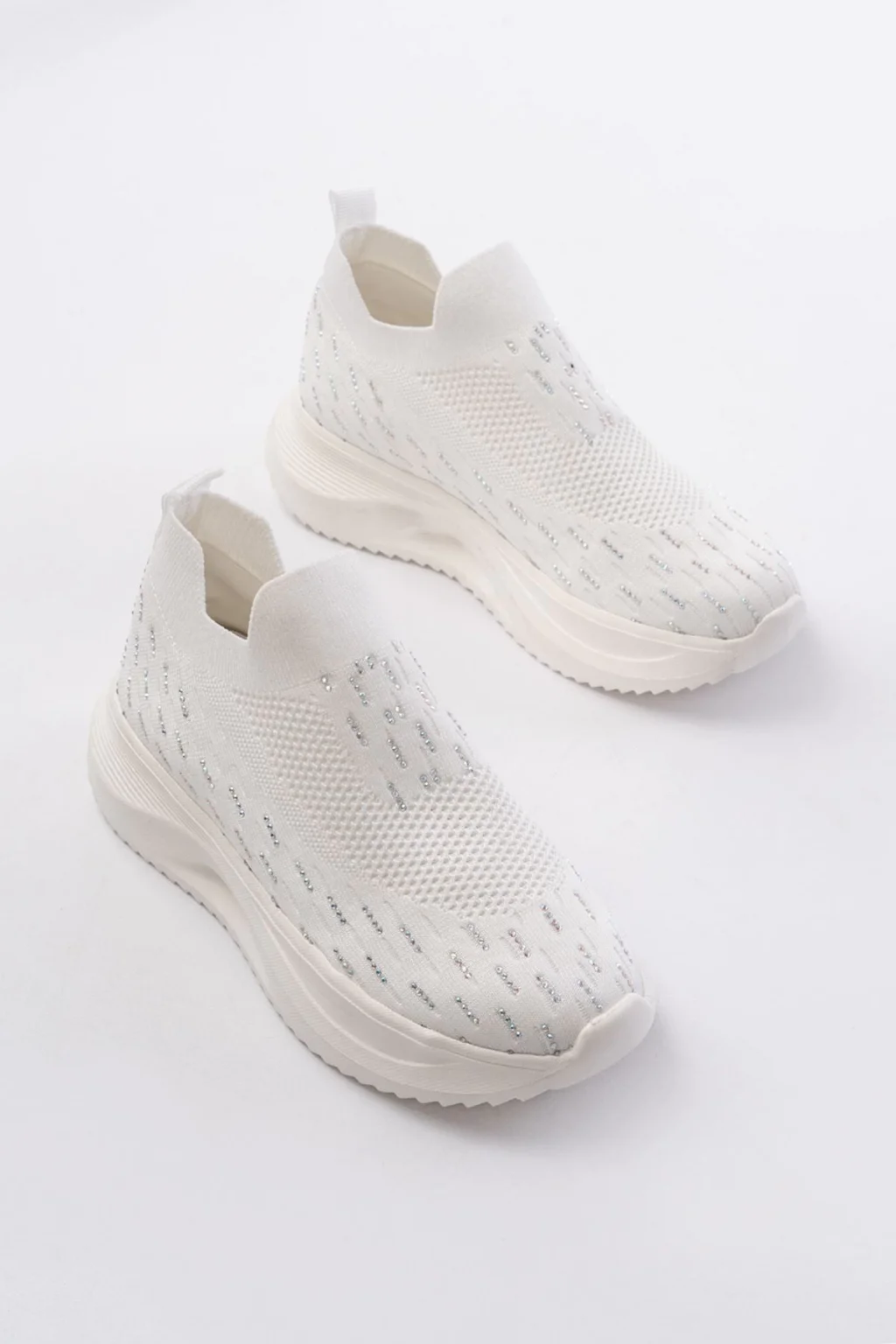 Lawin Beyaz Cilt Beyaz Simli Bağcıklı Spor Ayakkabı
