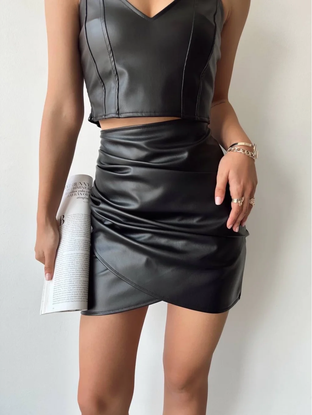 Drapeli Deri Etek Siyah W26771 hem şık hem de trend bir seçenek sunuyor. İster günlük hayatta ister özel davetlerde tercih edebileceğiniz bu etek, gardırobunuzun vazgeçilmezi olmaya aday!