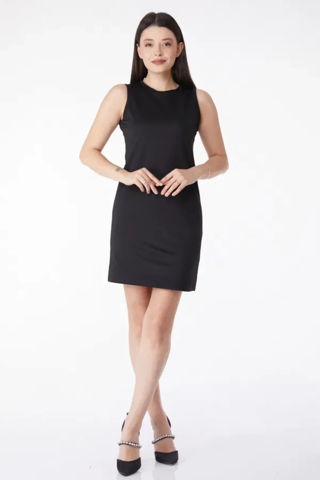 KAZAX markasının şık ve modern tasarımıyla öne çıkan Düz Bisiklet Yaka Kadın Siyah Mini Elbise, gardırobunuzun vazgeçilmez parçası olmaya aday!
