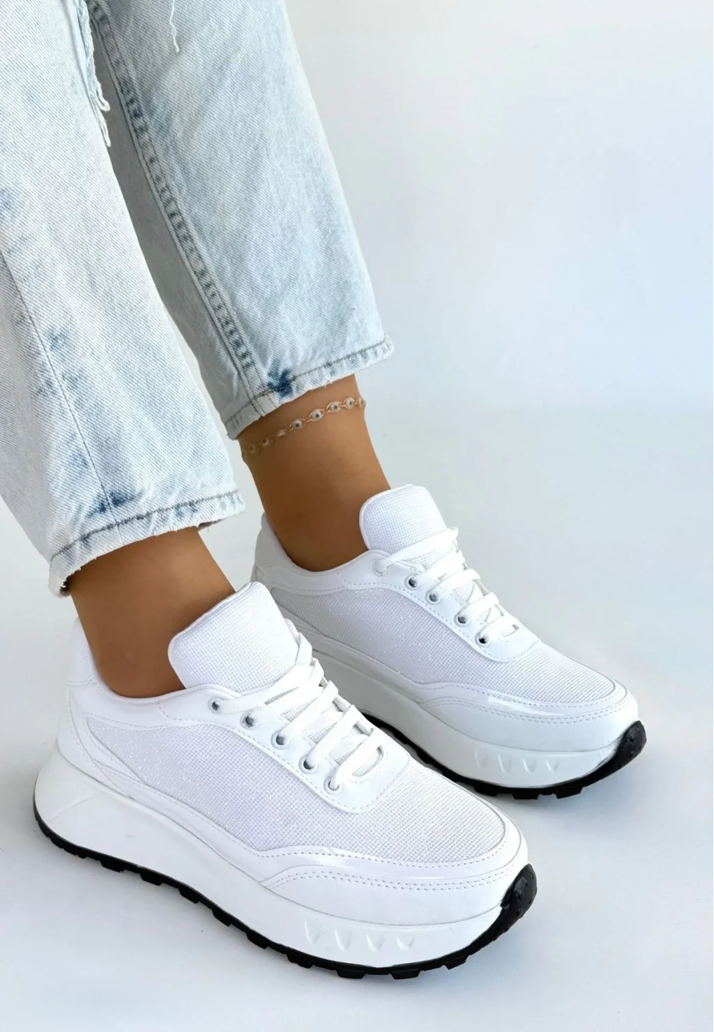 Edva Beyaz Cilt Bağcıklı Spor Ayakkabı