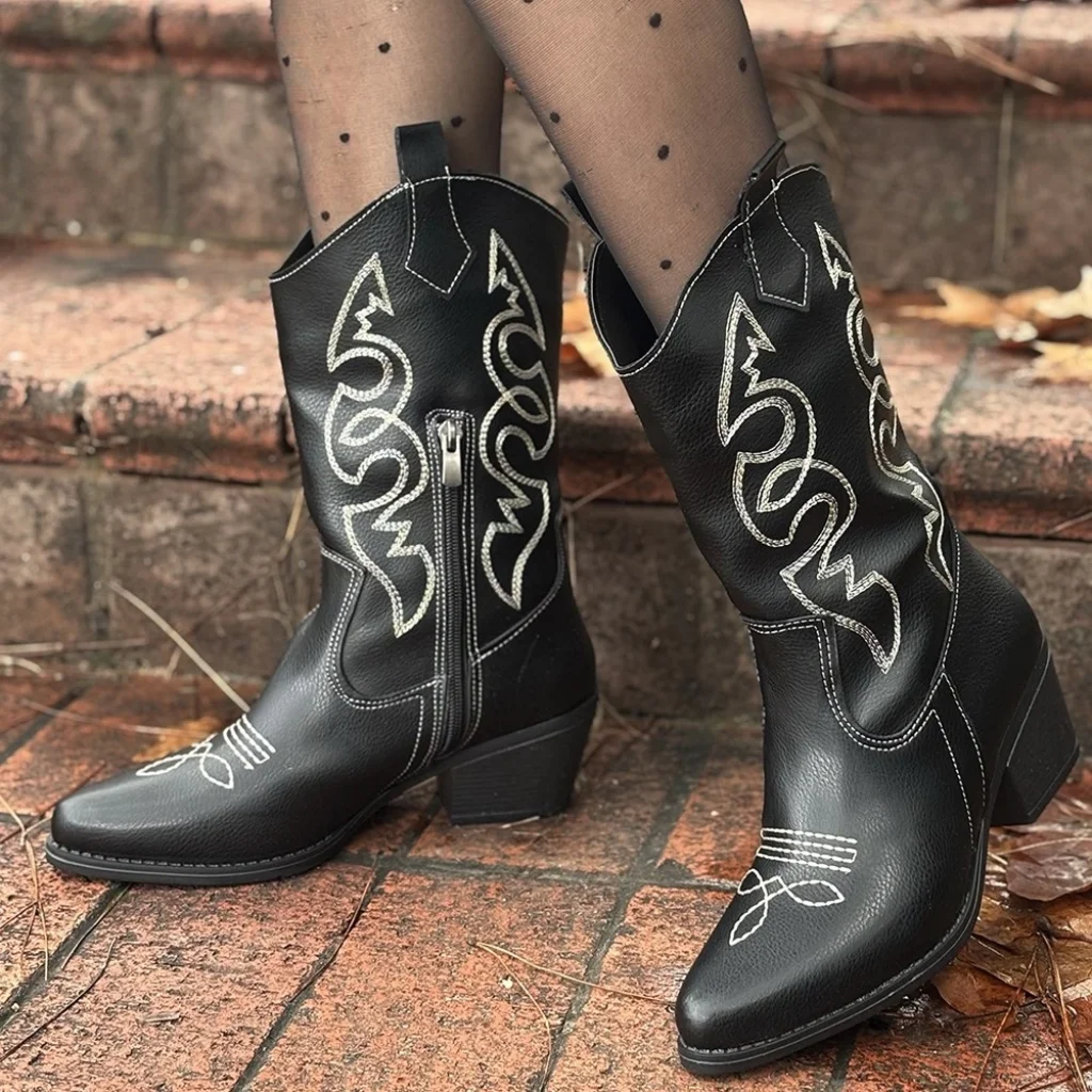 Detay: Topuklu Diz Altı Koboy Çizme