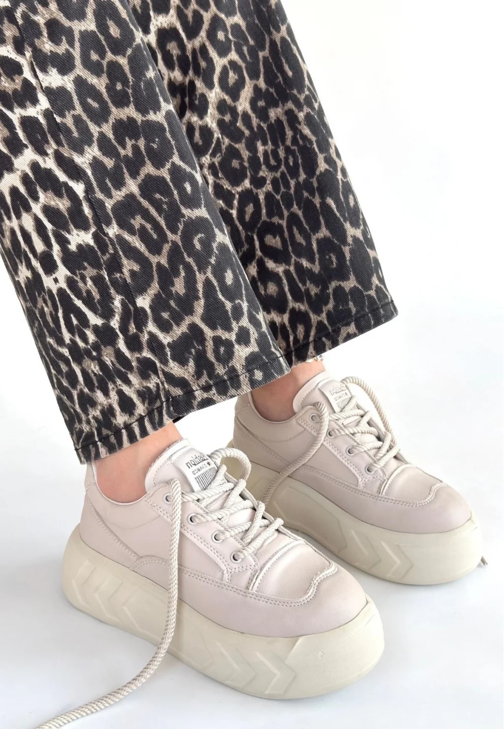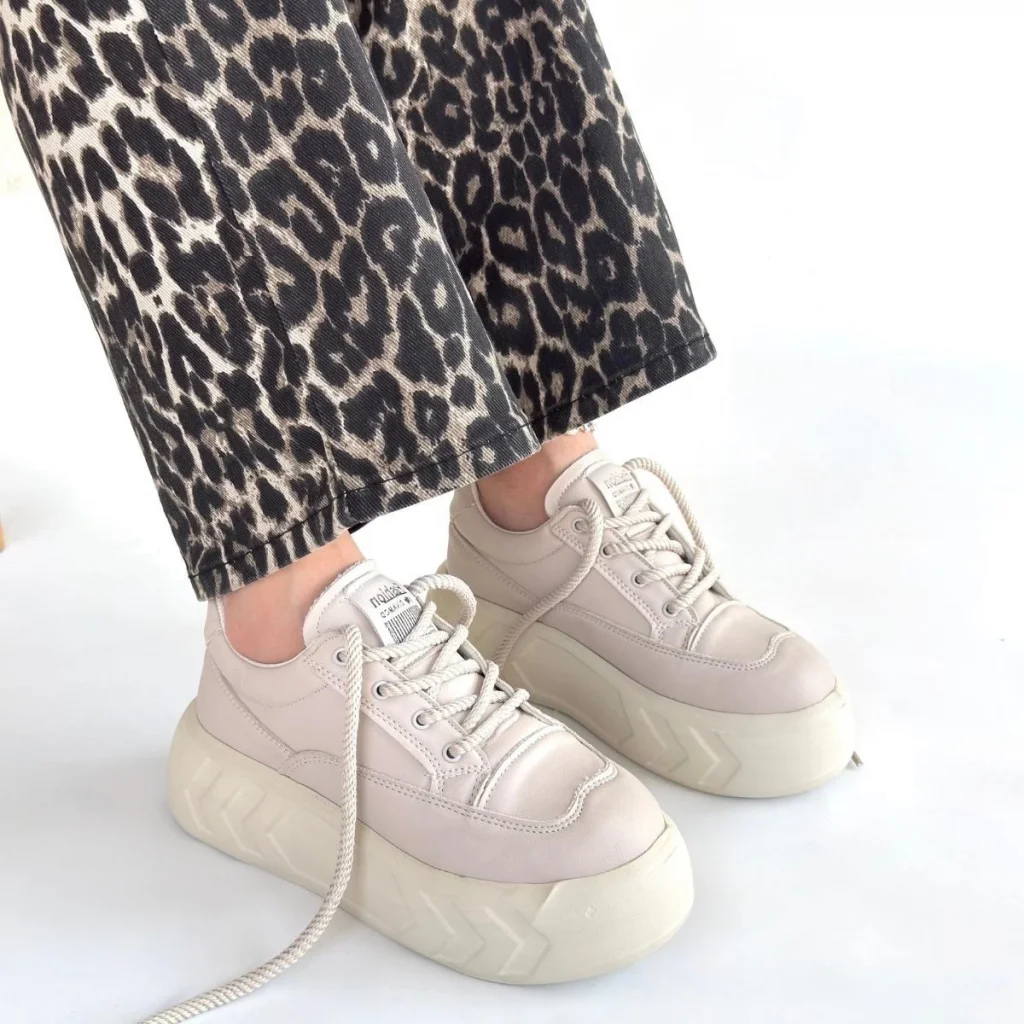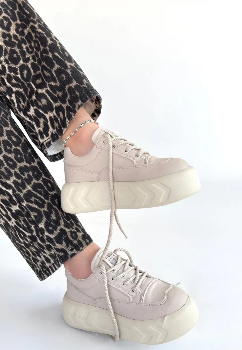 Emwa Bej Cilt Bağcıklı Spor Ayakkabı