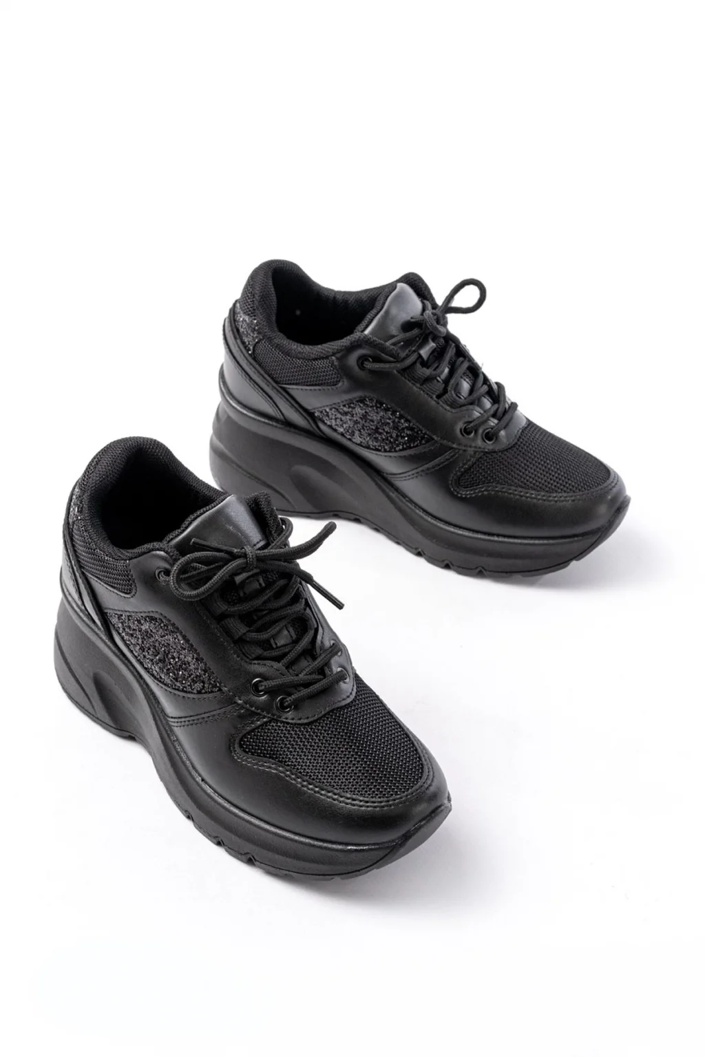 Natte Siyah Cilt Bağcıklı Spor Ayakkabı