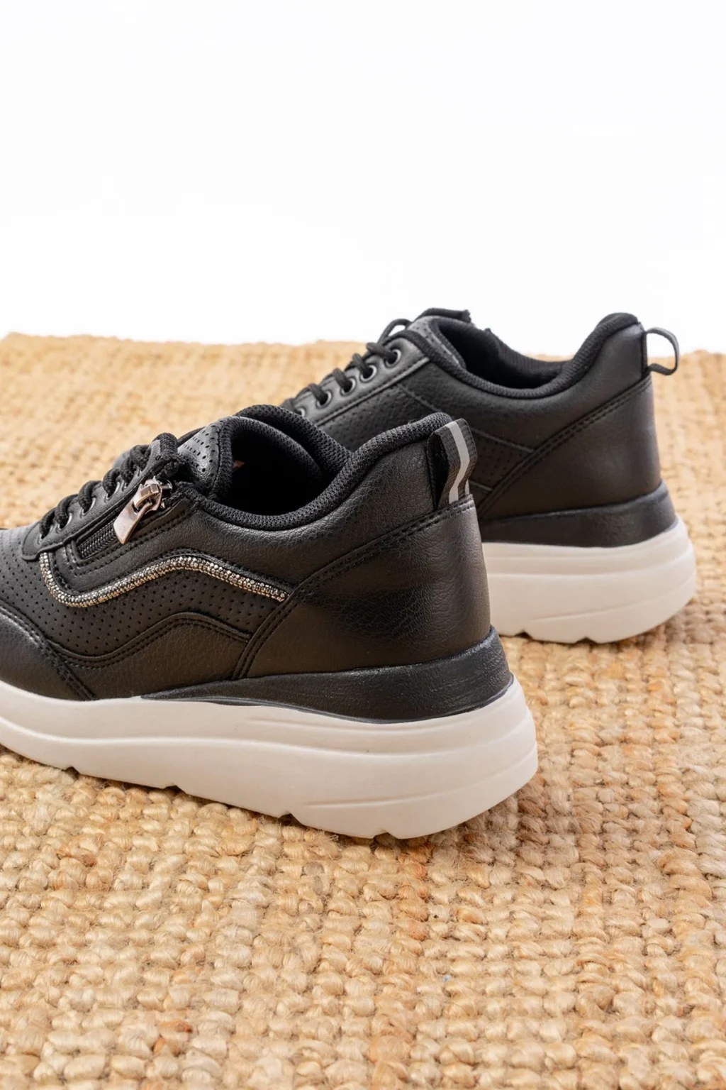 Natte Siyah Cilt Bağcıklı Spor Ayakkabı