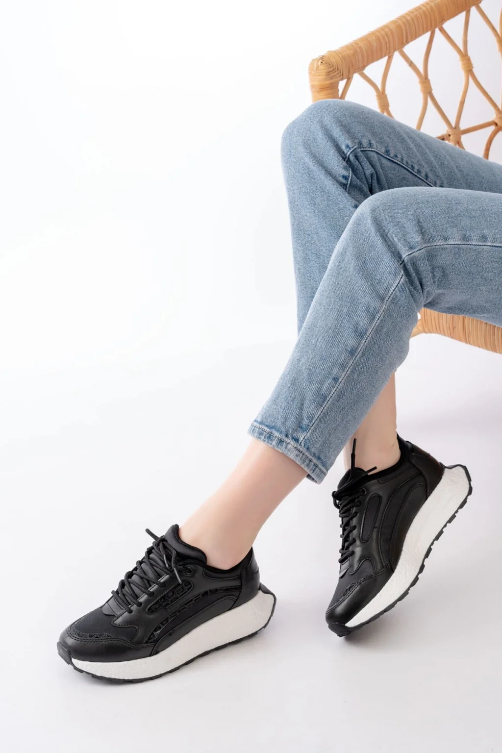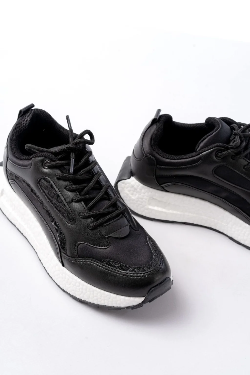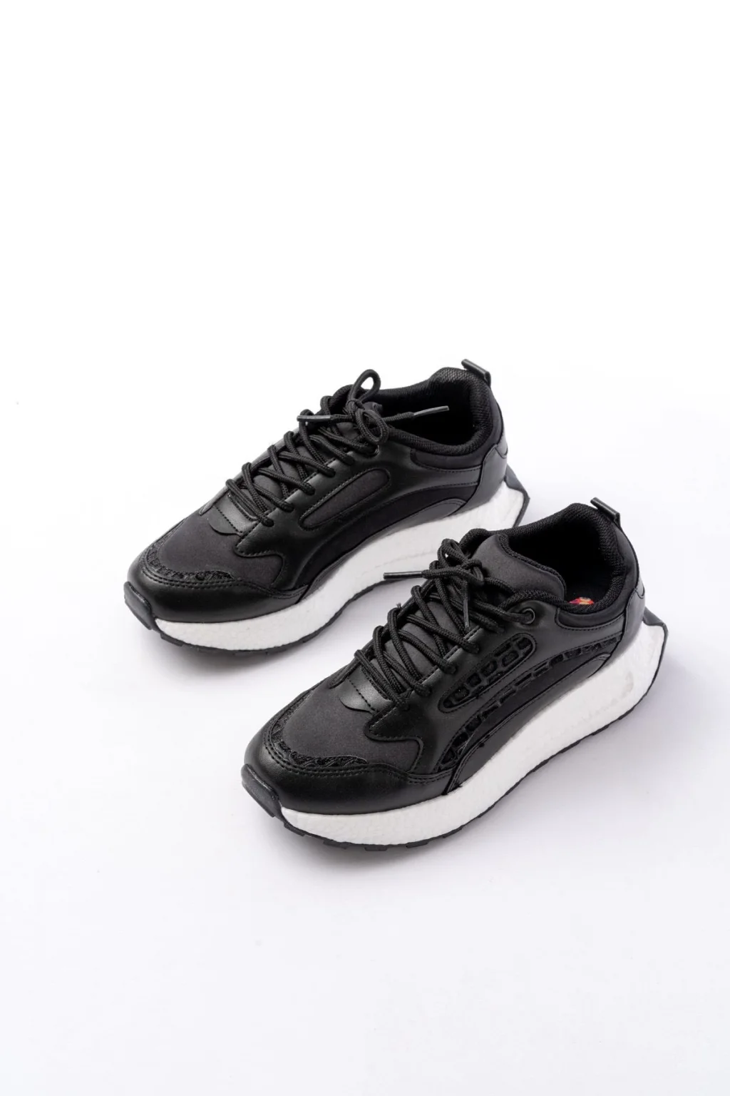 Jowen Siyah Cilt Beyaz Detaylı Bağcıklı Spor Ayakkabı