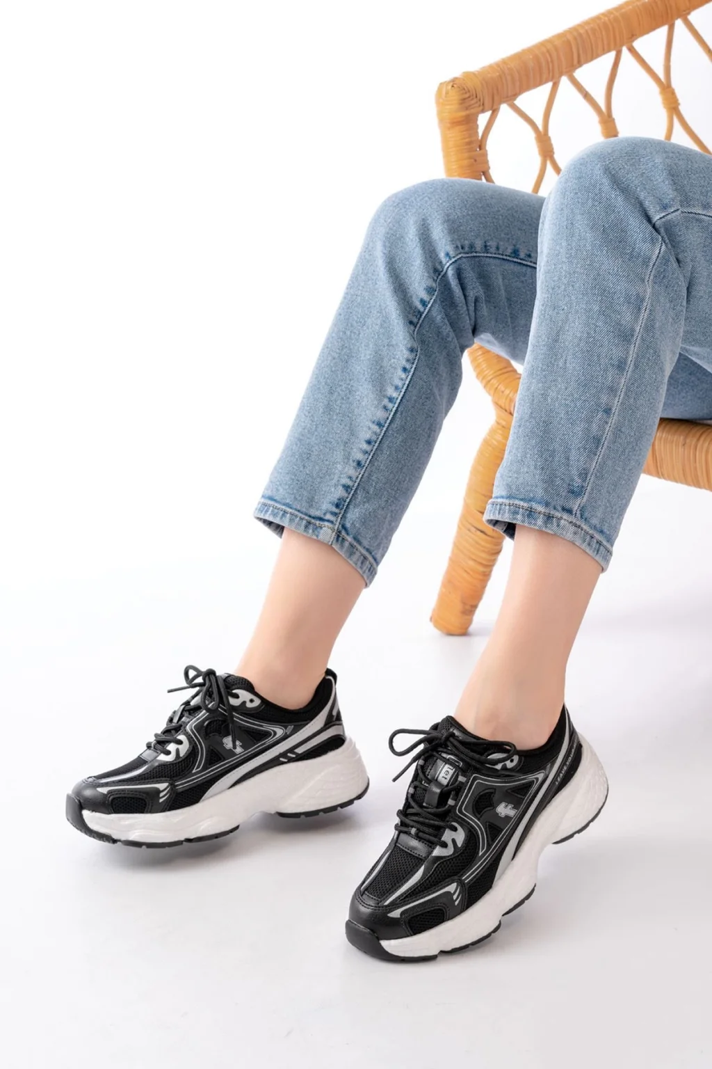 Jowen Siyah Cilt Beyaz Detaylı Bağcıklı Spor Ayakkabı