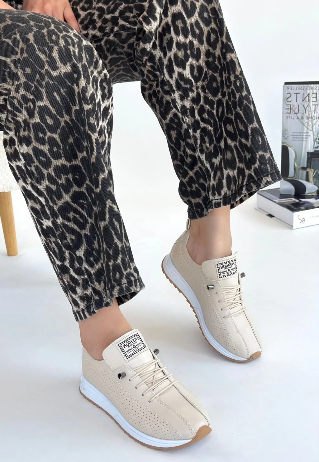 Fiert Bej Cilt Bağcıklı Spor Ayakkabı