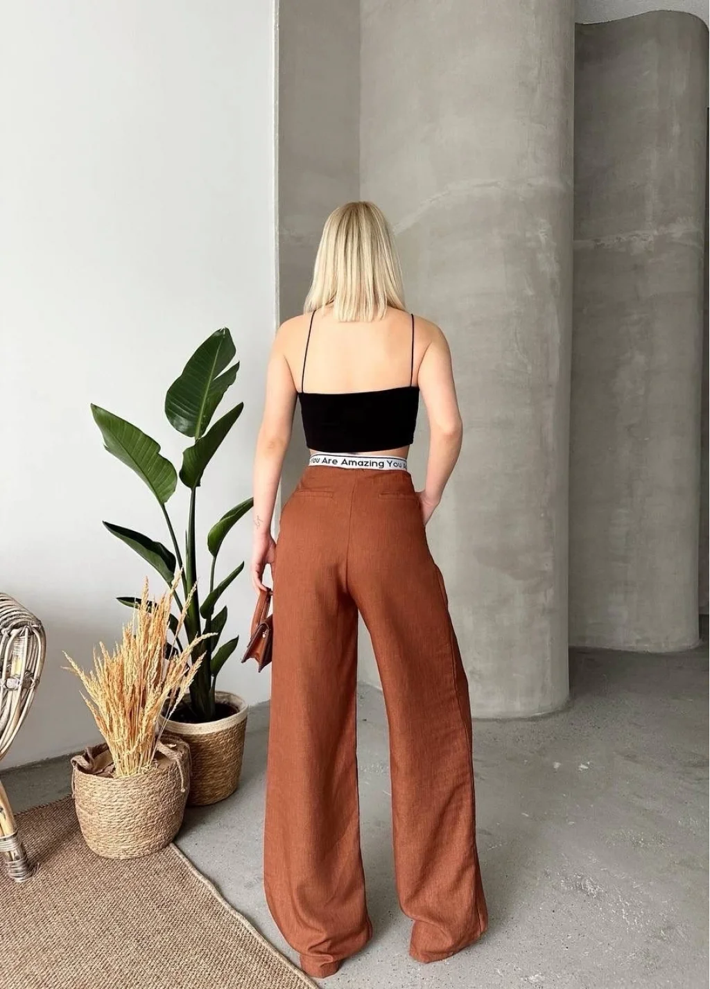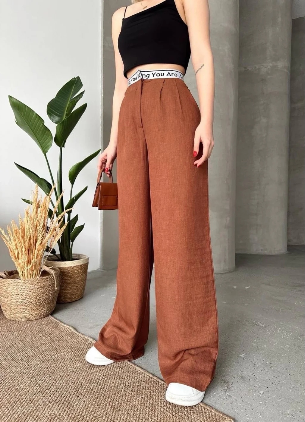 Flamlı kahve pantolon, şıklığı ve rahatlığı bir arada sunan bir seçenektir. Bu şık pantolon ile günlük hayatta veya özel davetlerde tarzınızı konuşturabilirsiniz.