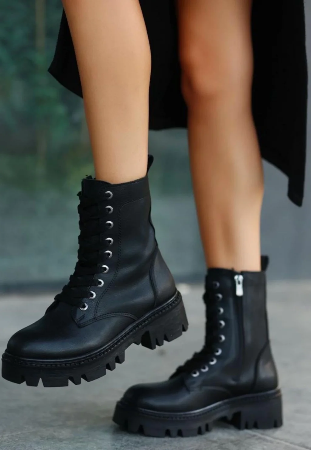 Flona Siyah Cilt Bağcıklı Bot