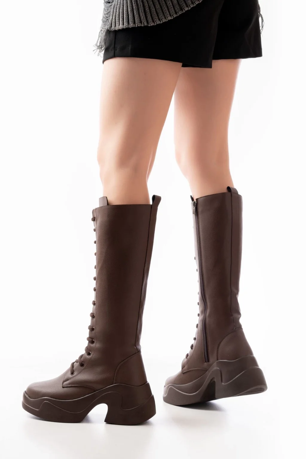02-312 Kahverengi Toka Aksesuarlı Fermuarlı Günlük Kadın Çizme