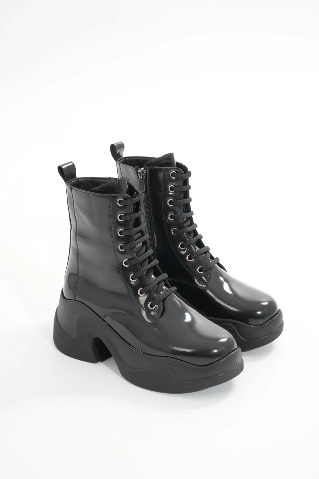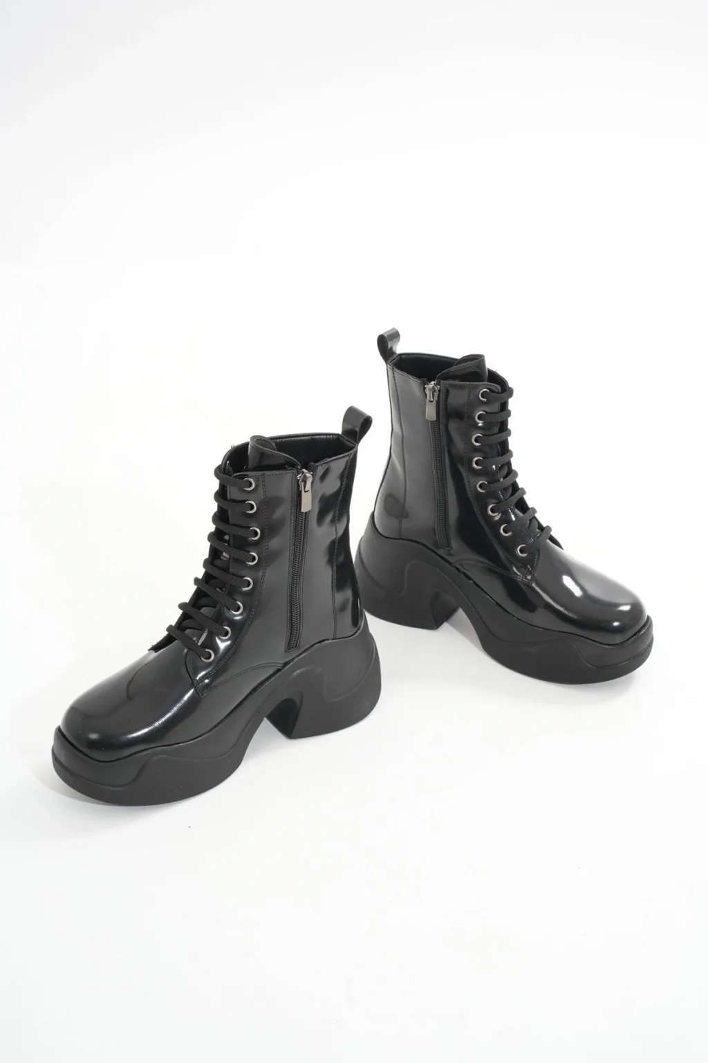 02-02 Siyah Taş Aksesuarlı Lastikli Günlük Kadın Bot
