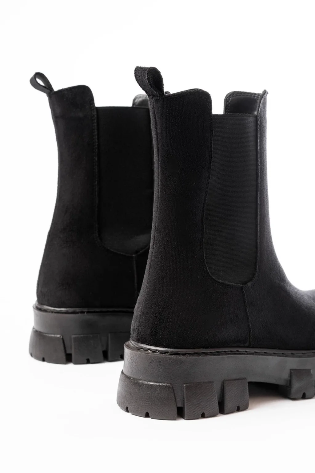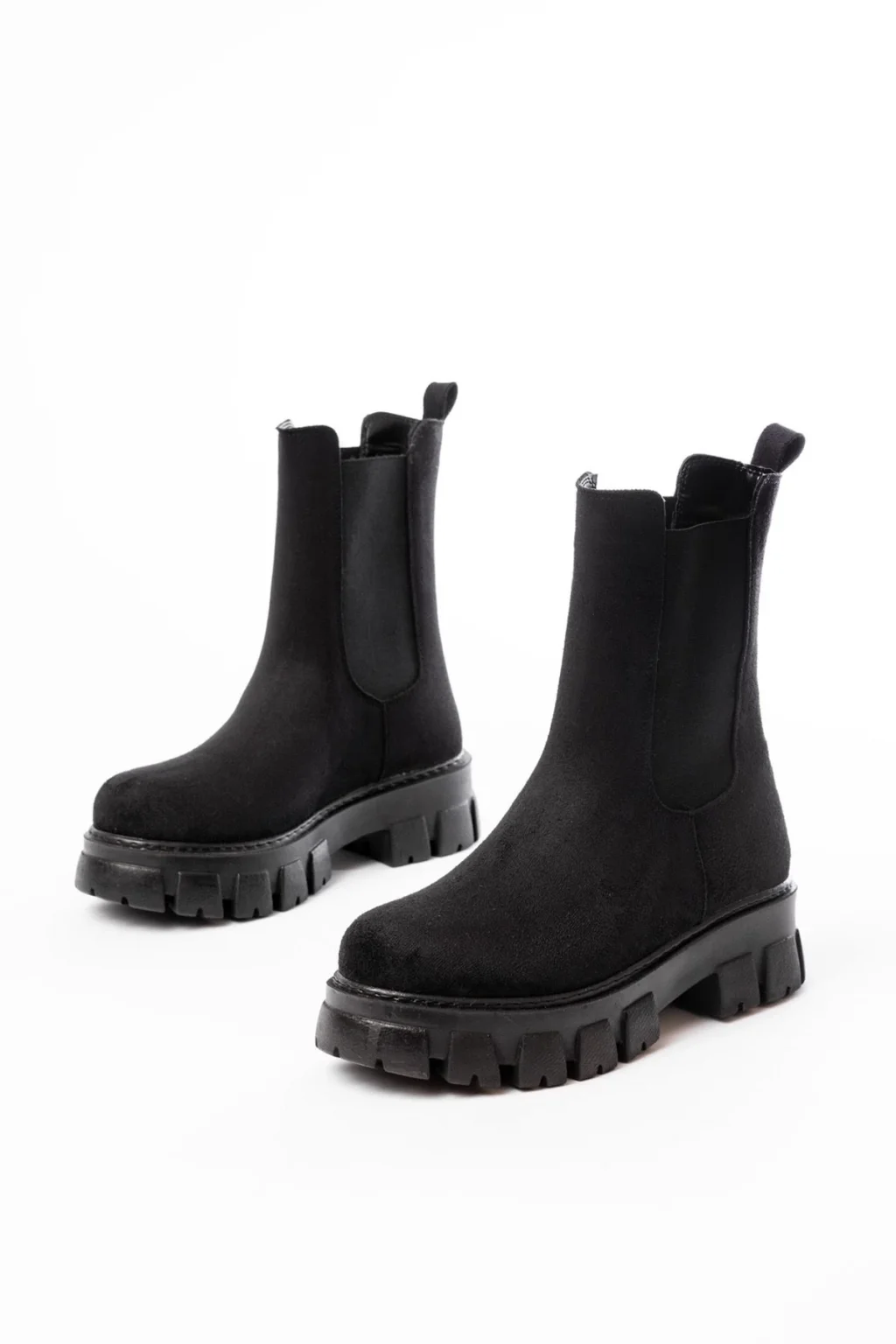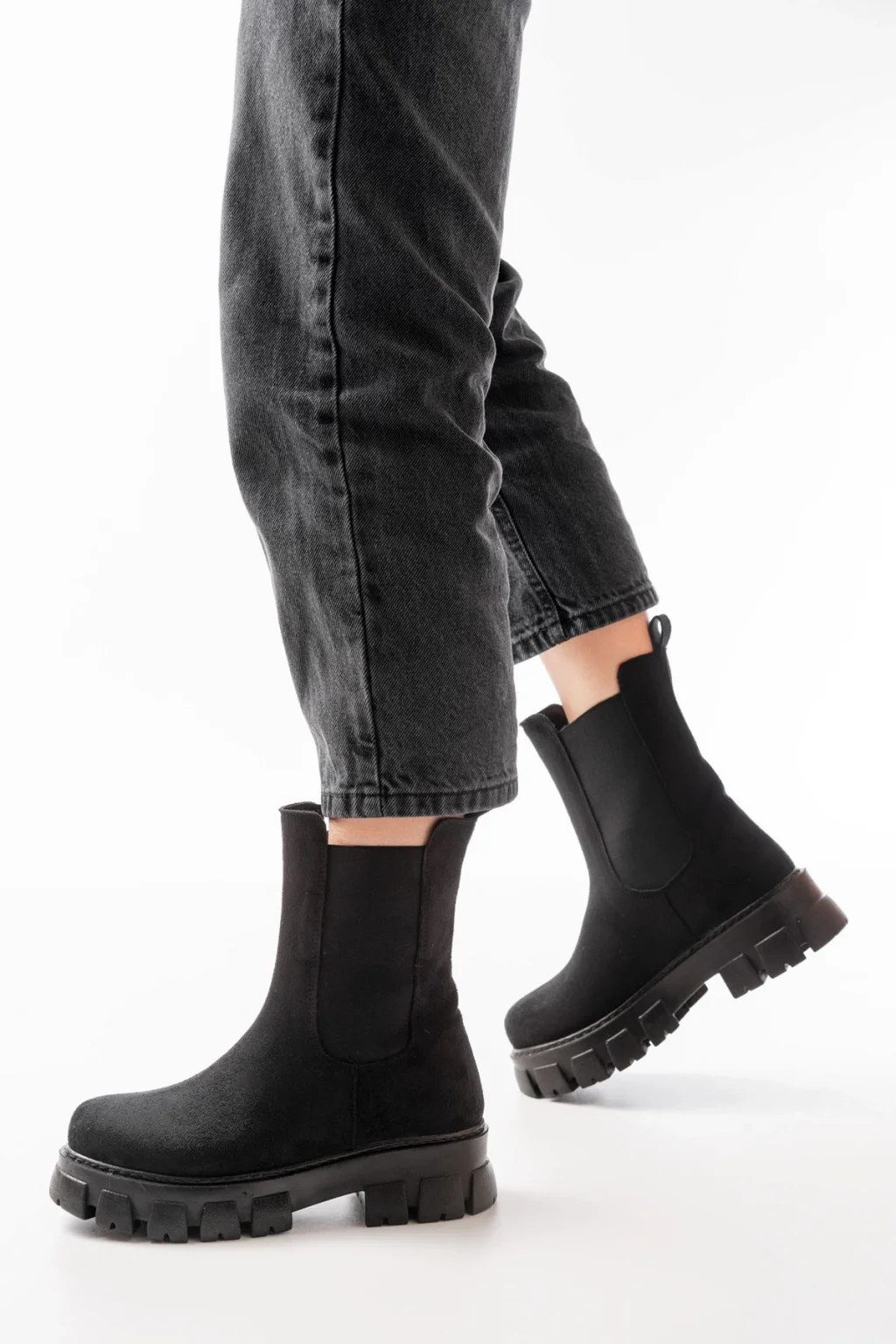 02-02 Siyah Süet Taş Aksesuarlı Lastikli Günlük Kadın Bot