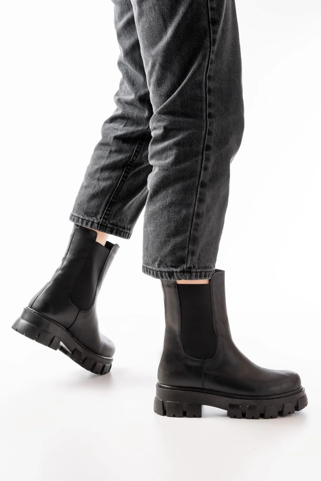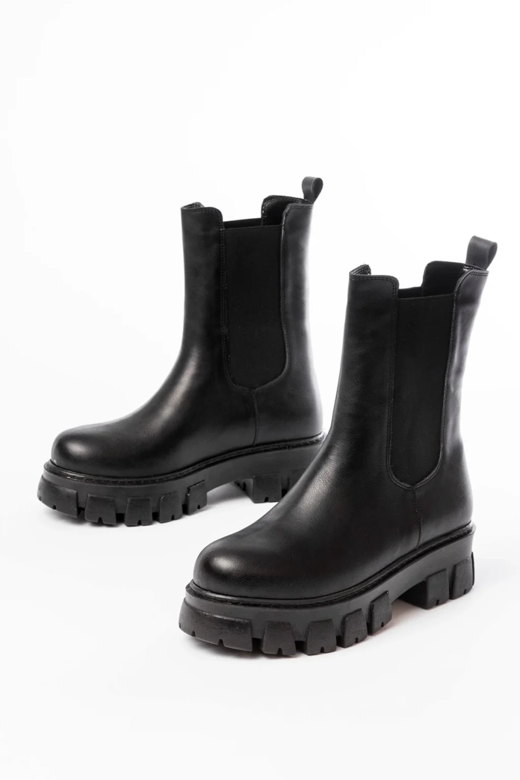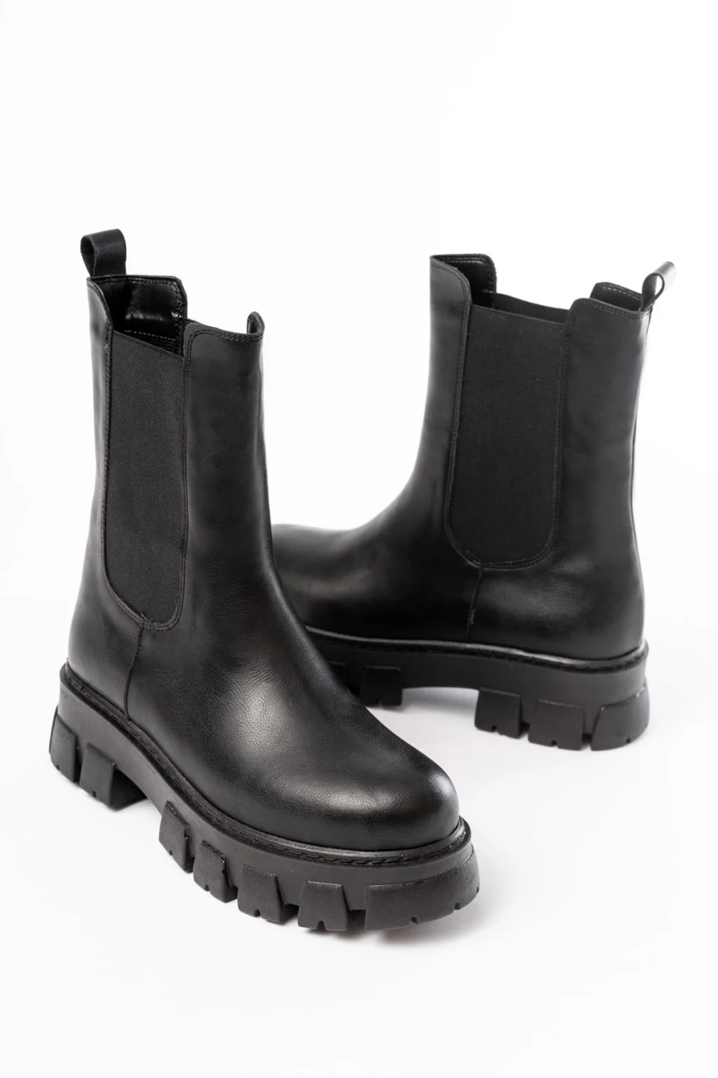 02-02 Siyah Taş Aksesuarlı Lastikli Günlük Kadın Bot